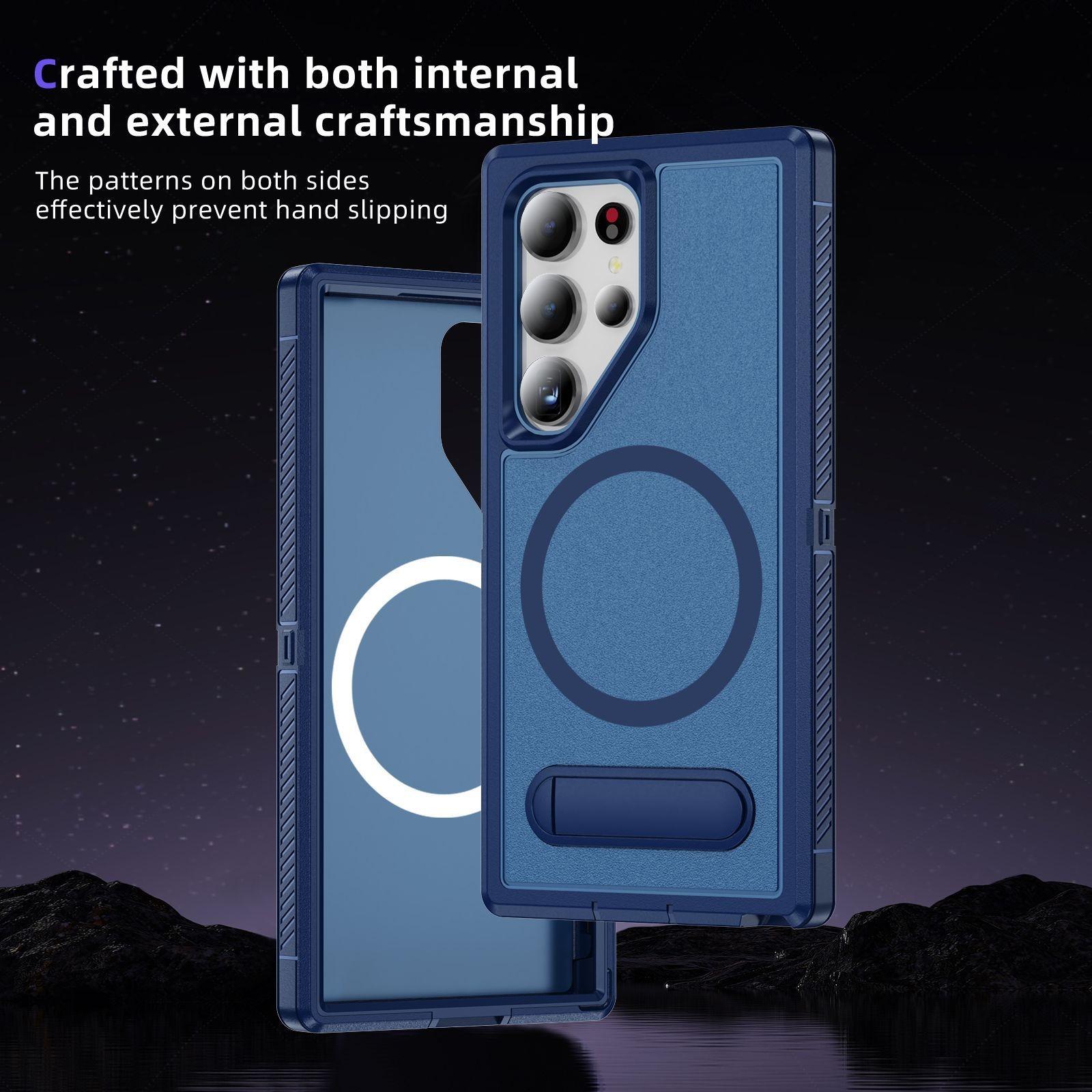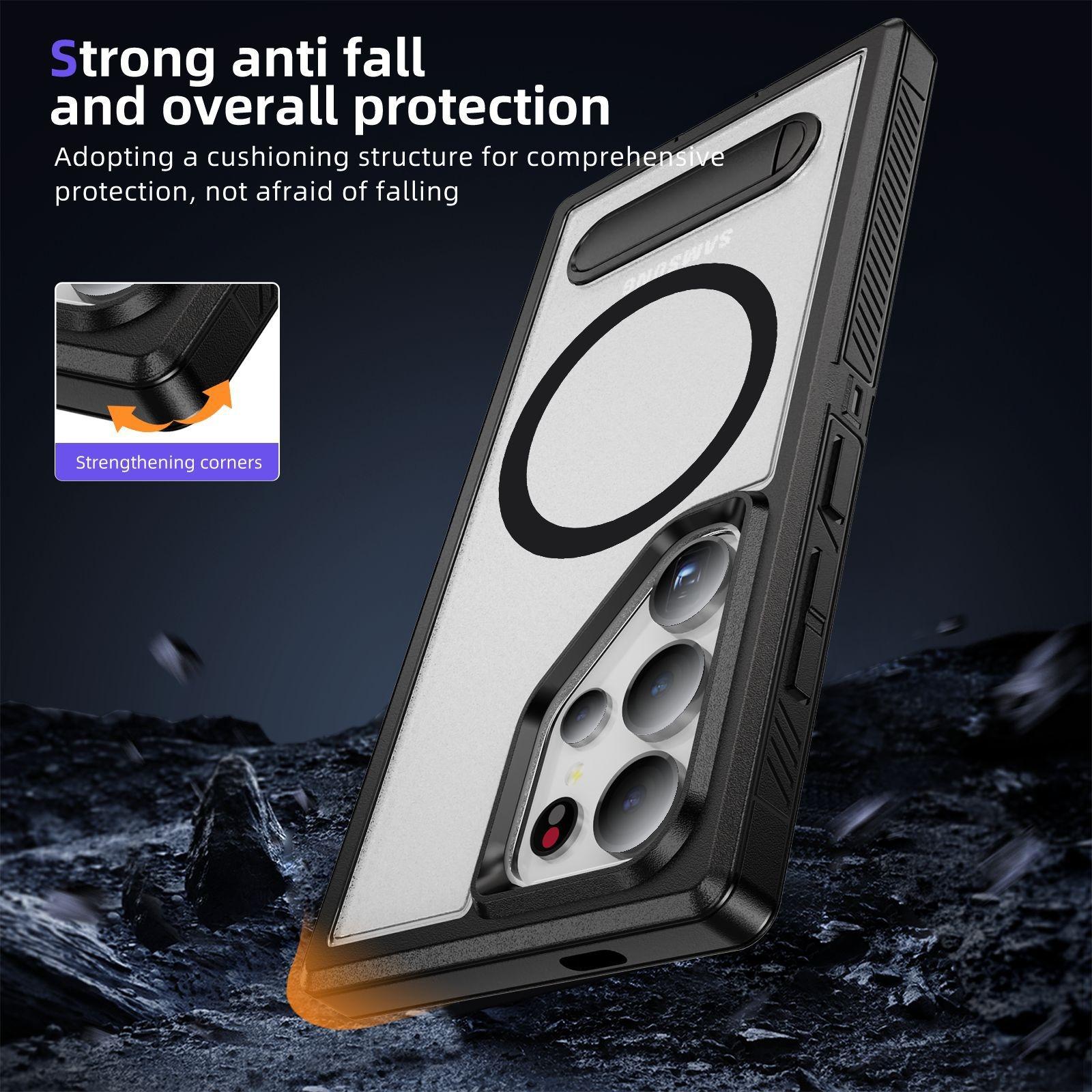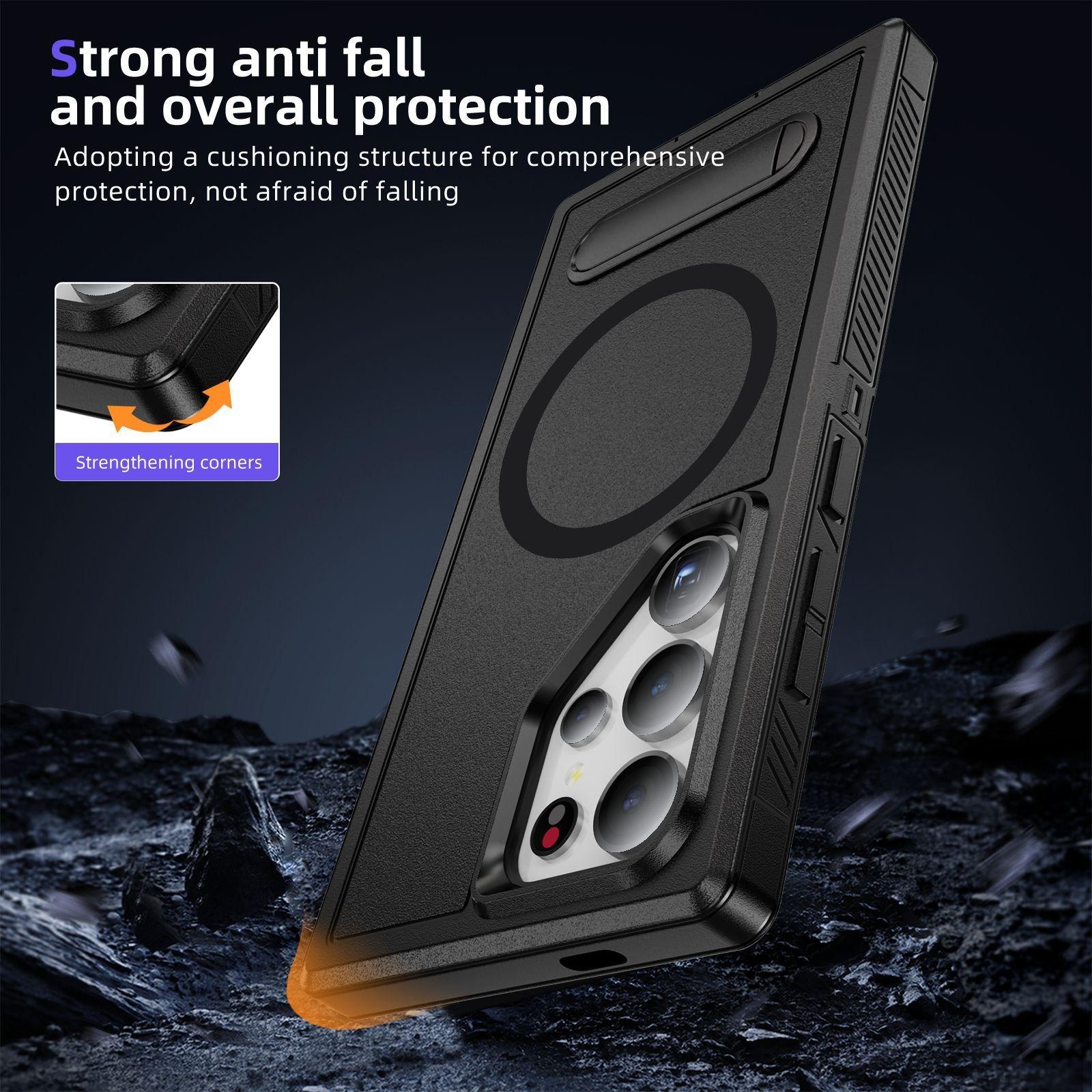 Anti-Dust Anti-Fall Heavy Duty Protection Shockproof Strong Magnetic Phone Case With Kickstand for Samsung S25Ultra S24 S23FE S23 S22 Bumper Matte Hard Full Cover