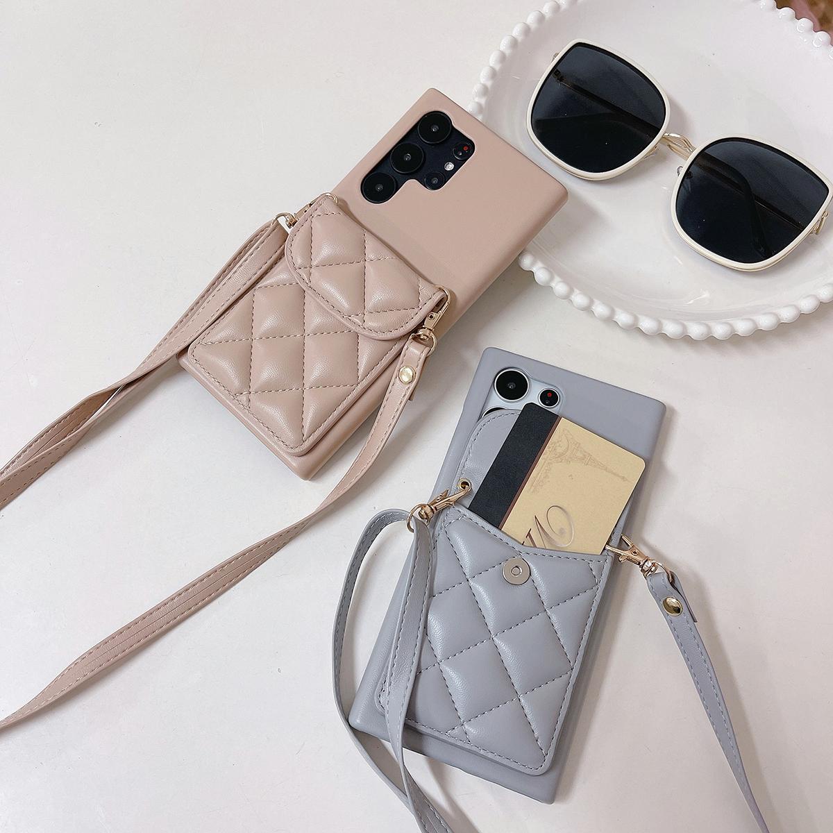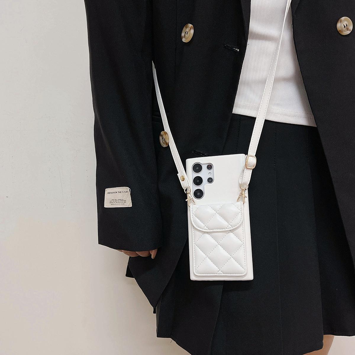 Crossbody Wallet Case For Samsung Galaxy S25 S25Plus S25Ultra S24 S24FE S24Plus S24Ultra Rhombic UP Down Leather Shoulder Chain Side Buckle Cover