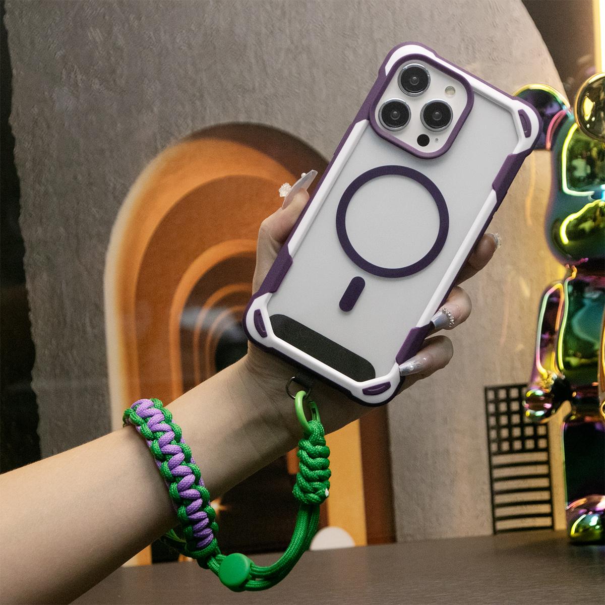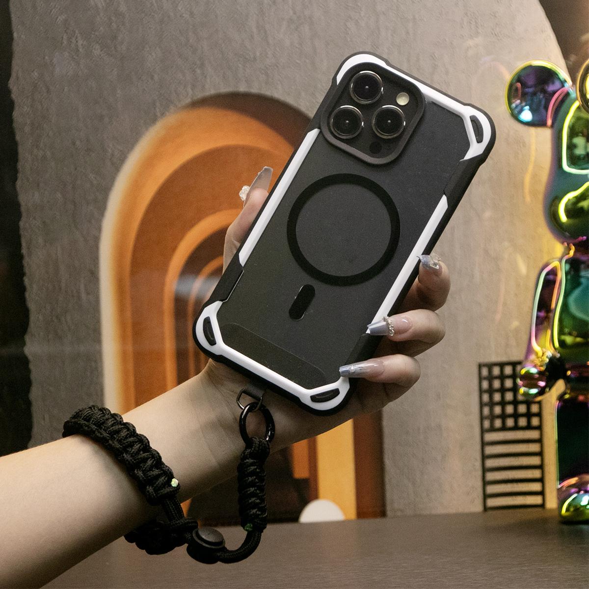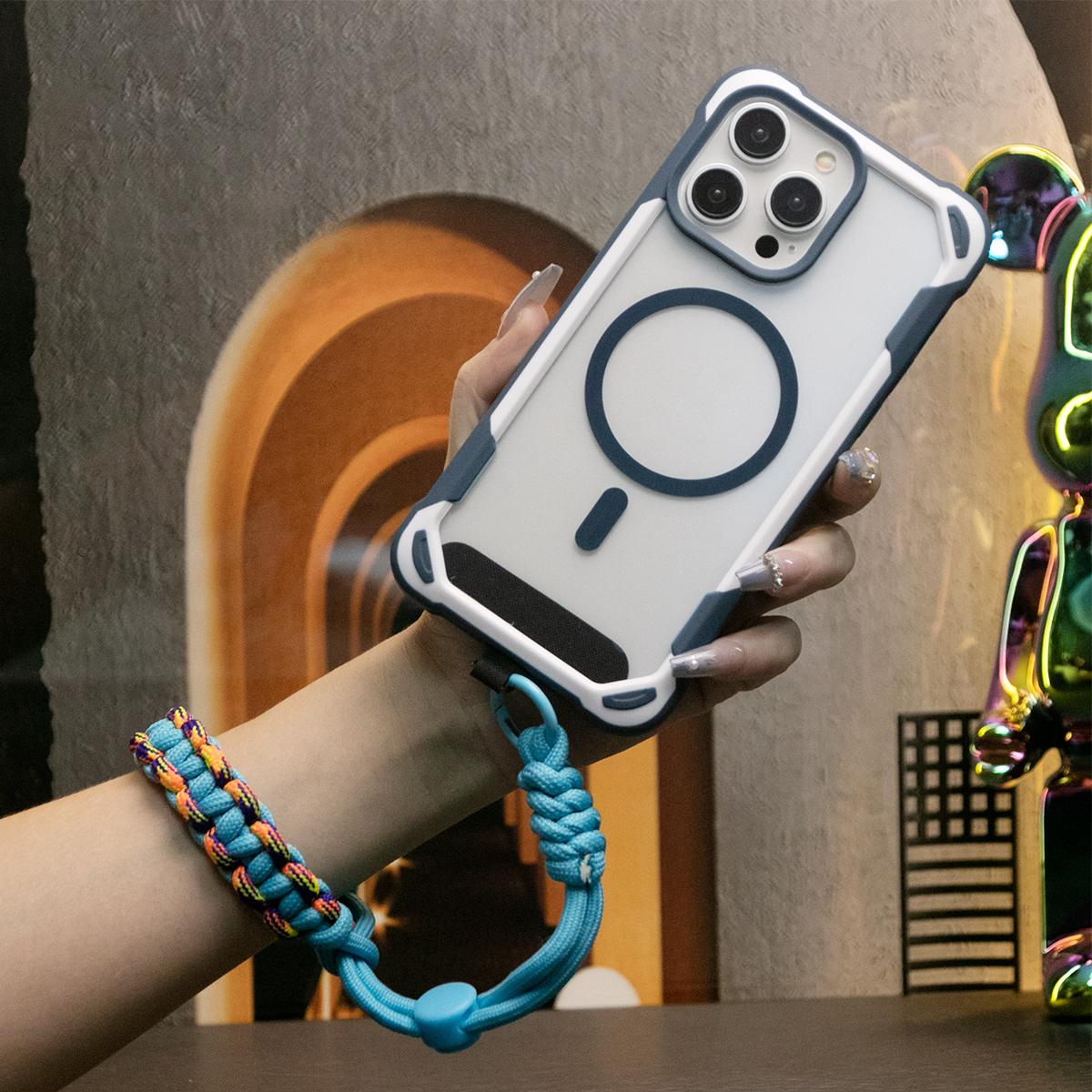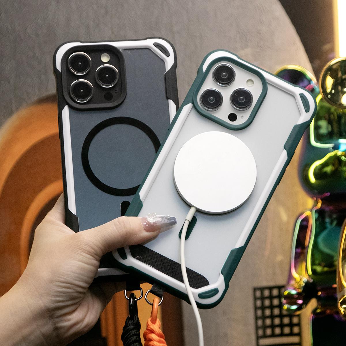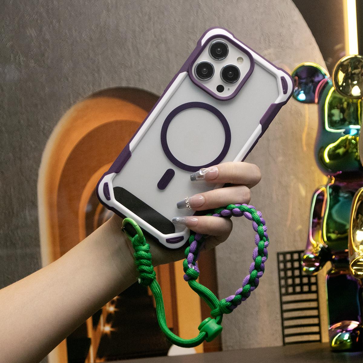 For iPhone 16 15 14 13 12 11 Pro Max Case, Clear Acrylic Two-tone Magnetic Phone Case With Adjustable Wristbands, Camera Protector Shockproof Non-Yellowing Heavy Duty Protection Hard Cover