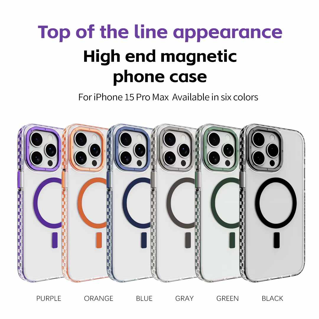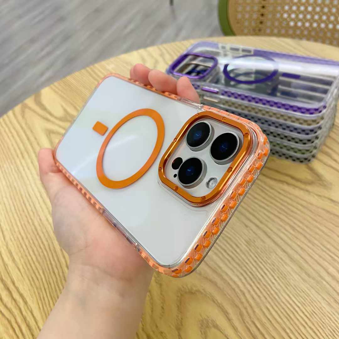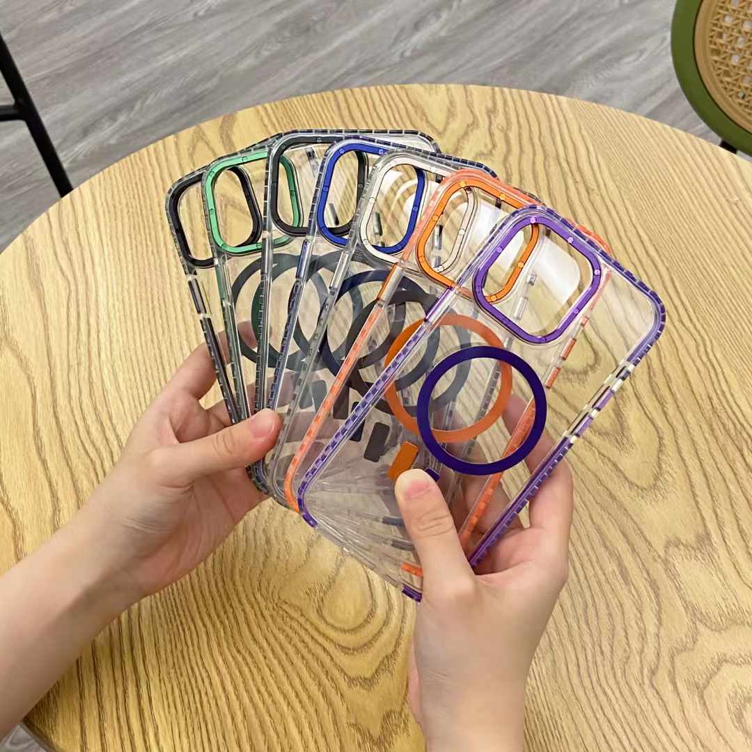 For iPhone 16 15 14 13 12 Pro Max Phone Case, Clear High Definition Two-tone Shockproof Acrylic Metal Frame for Magsafe Support Wireless Charging Anti-Fall Shockproof Full Cover