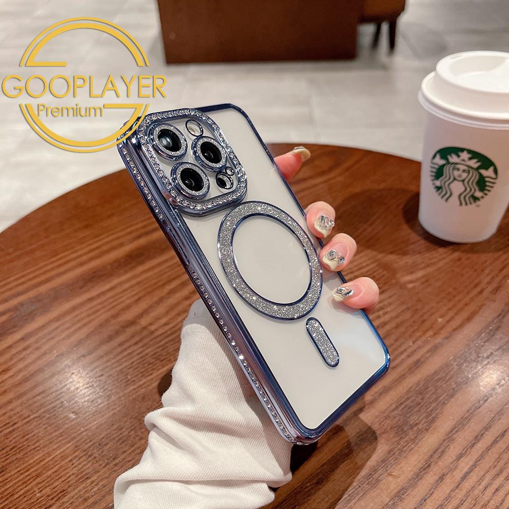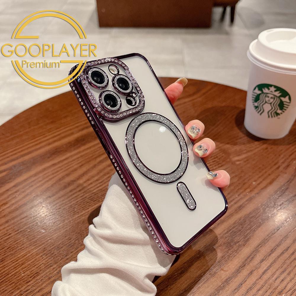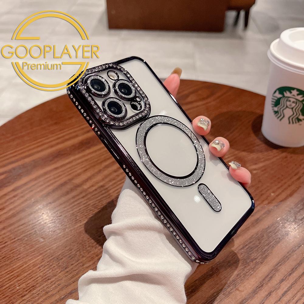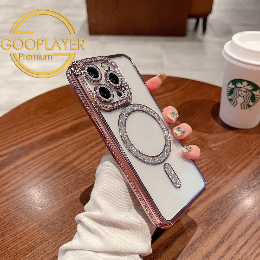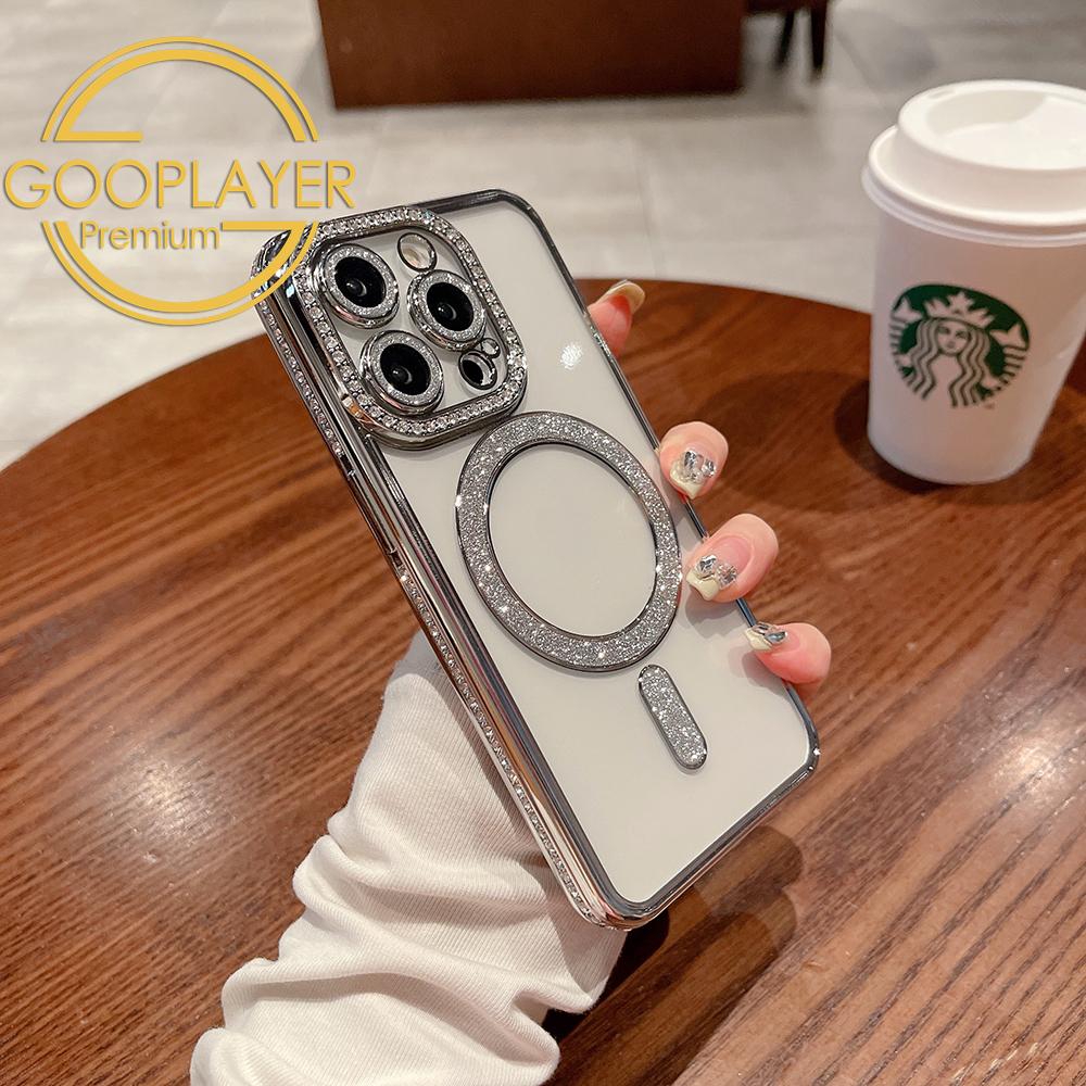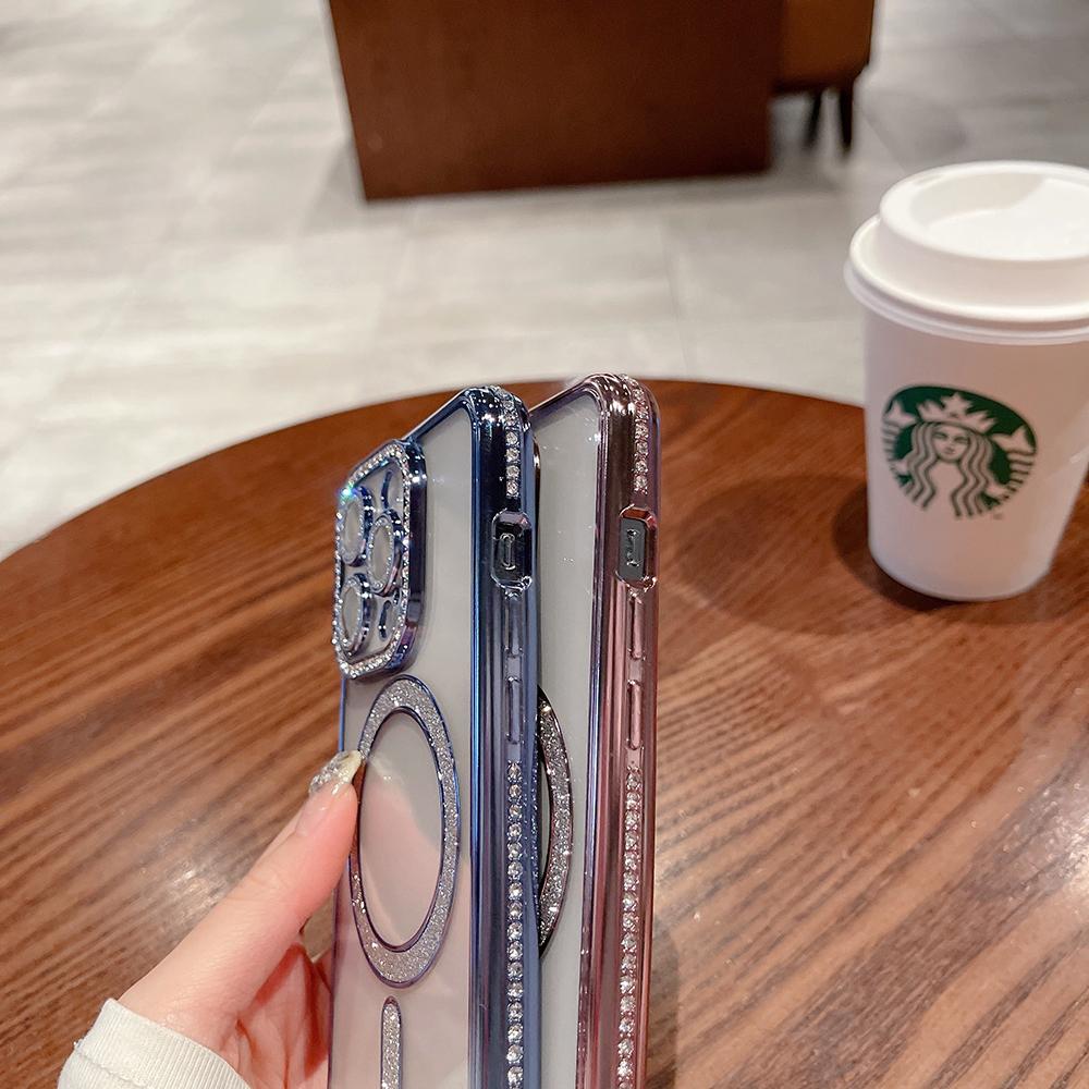 For iPhone 16 15 14 13 12 Pro Max Phone Case, Glitter Luxury Rhinestone Clear Magnetic Support Wireless Charging TPU Built-in Camera Protector for Magsafe Hard Full Cover