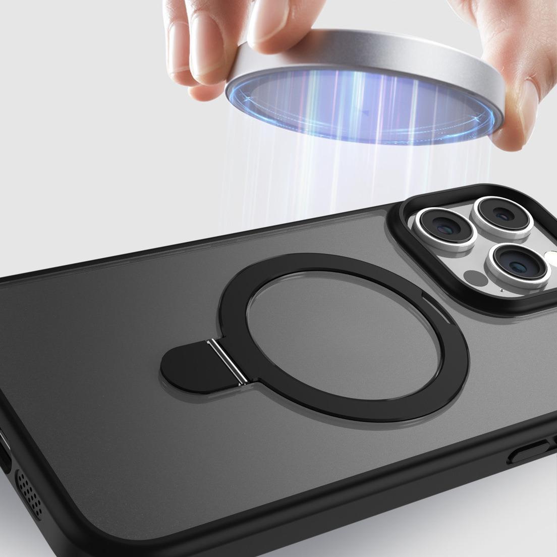 For iPhone 16ProMax 16 15 14 13 Pro Max Phone Case With Magnetic Metal Kickstand, Matte Transparent Acrylic Shockproof Hard Anti-Fall Full Cover With Camera Lens Protector