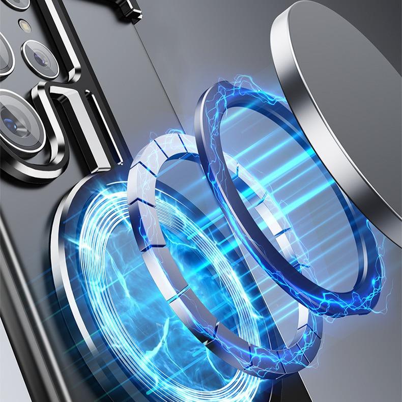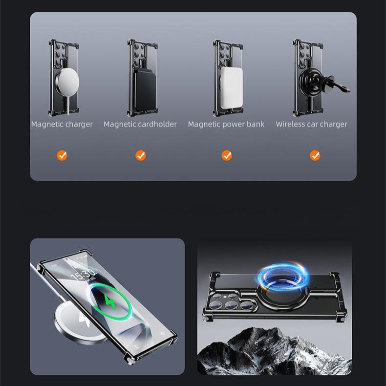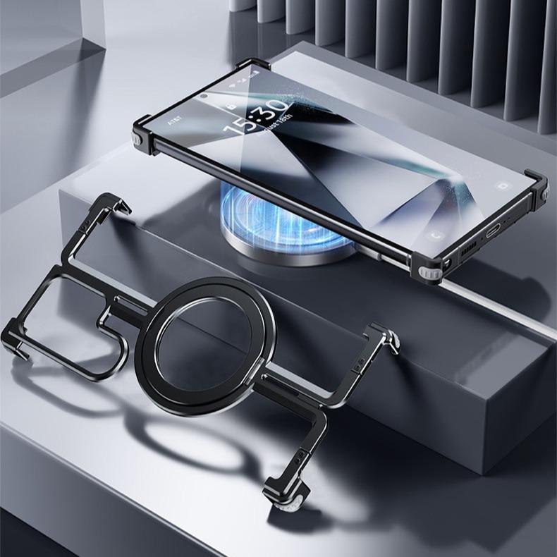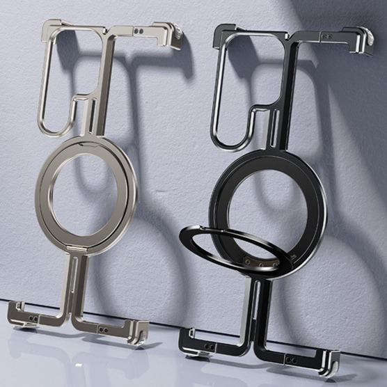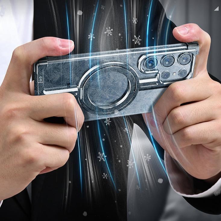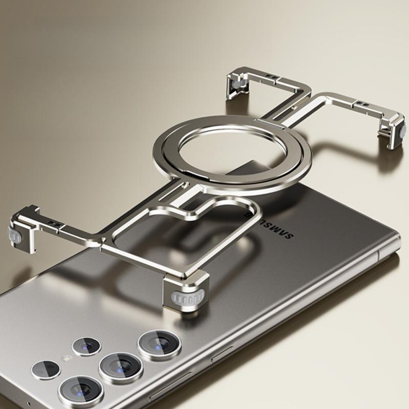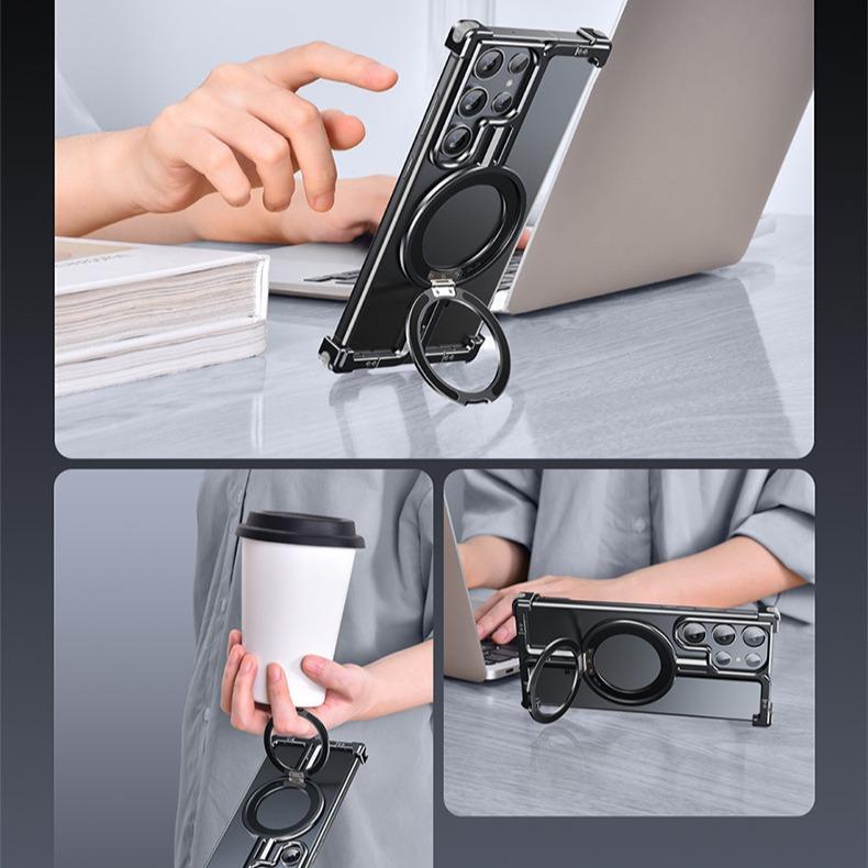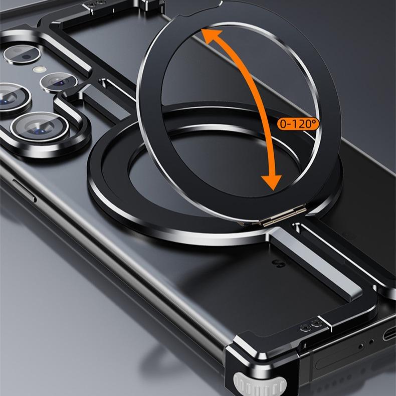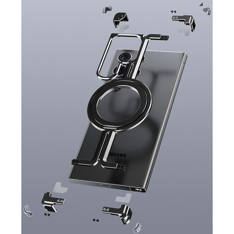 For Samsung S25Ultra S24Ultra S24+ S24 Aluminum π Shape Phone Case with Metal 360 Rotating Kickstand, Anti-Fall for Magsafe Shockproof Frameless Support Wireless Charging Hard Full Cover