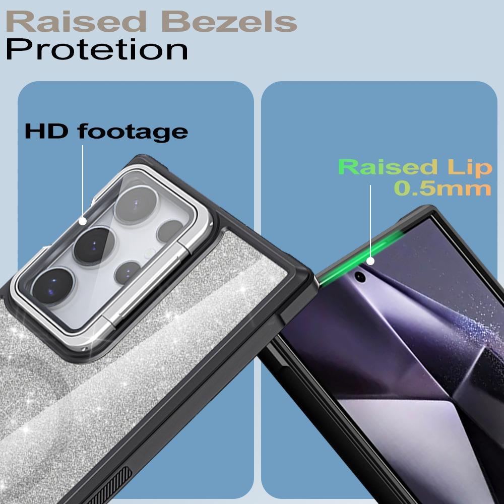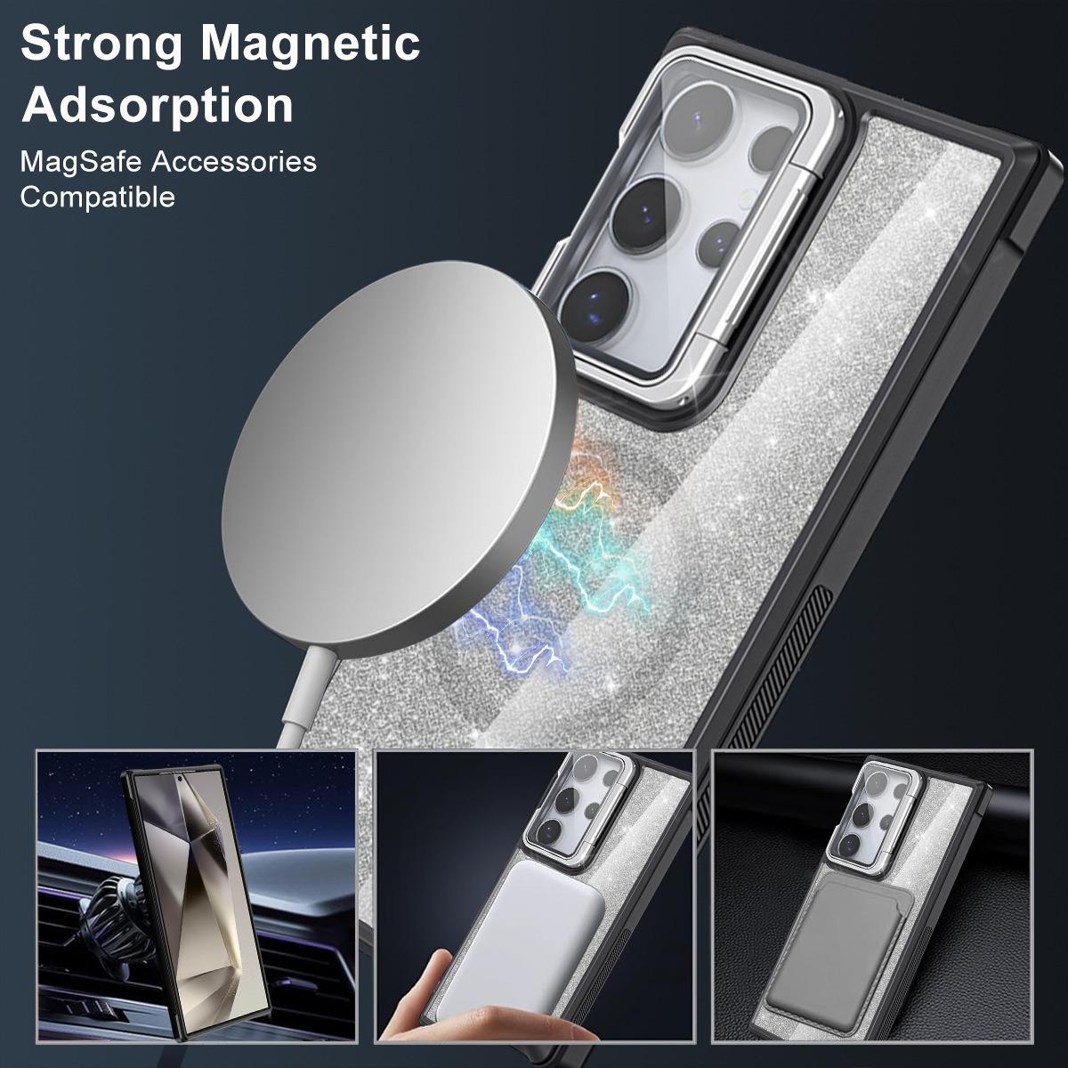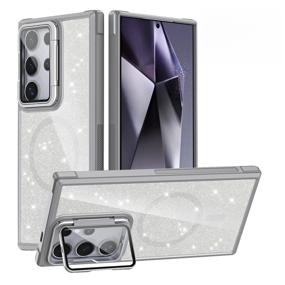 For Samsung S25Ultra S25 S24 S23 S21FE S20FE Strong Magnetic Phone Case, Glass Camera Kickstand Protection, Glitter Clear Acrylic Four Corner Shockproof Bumper Hand Feel Hard Full Cover