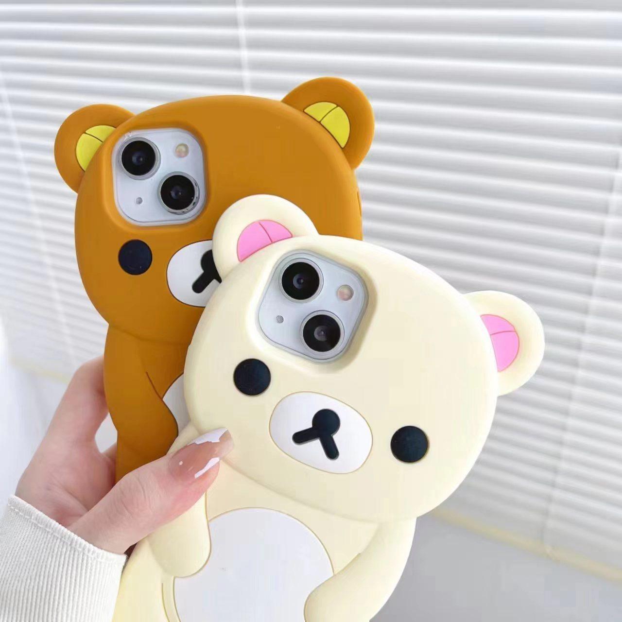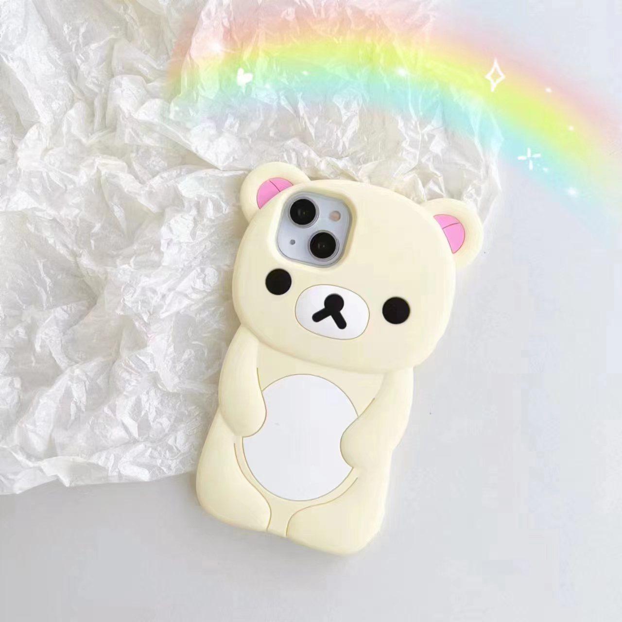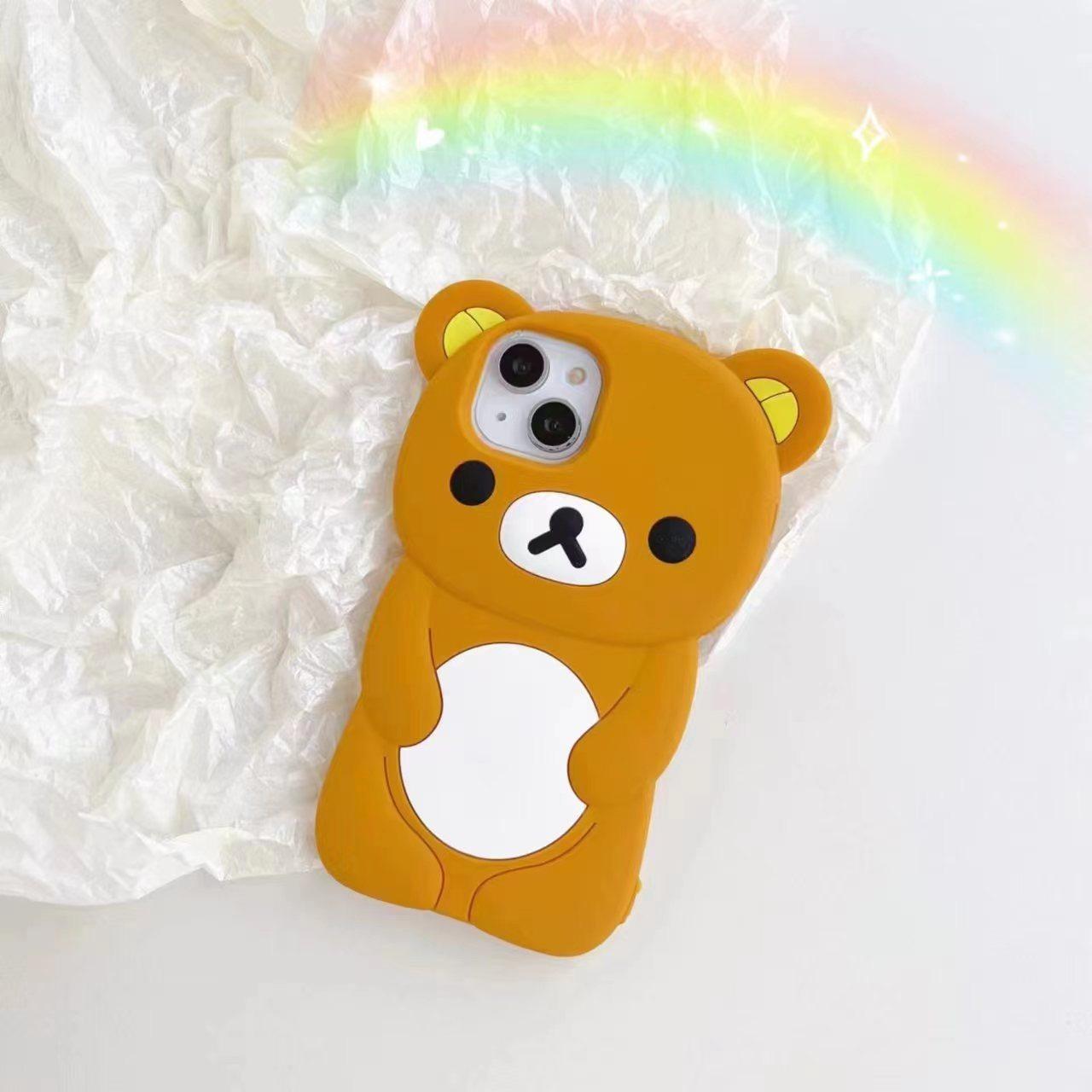 Full Silicone Lovely Bear Protection Shockproof Phone Case For iPhone 16ProMax 15 14 13 12 11 Skin Feel Soft Full Cover