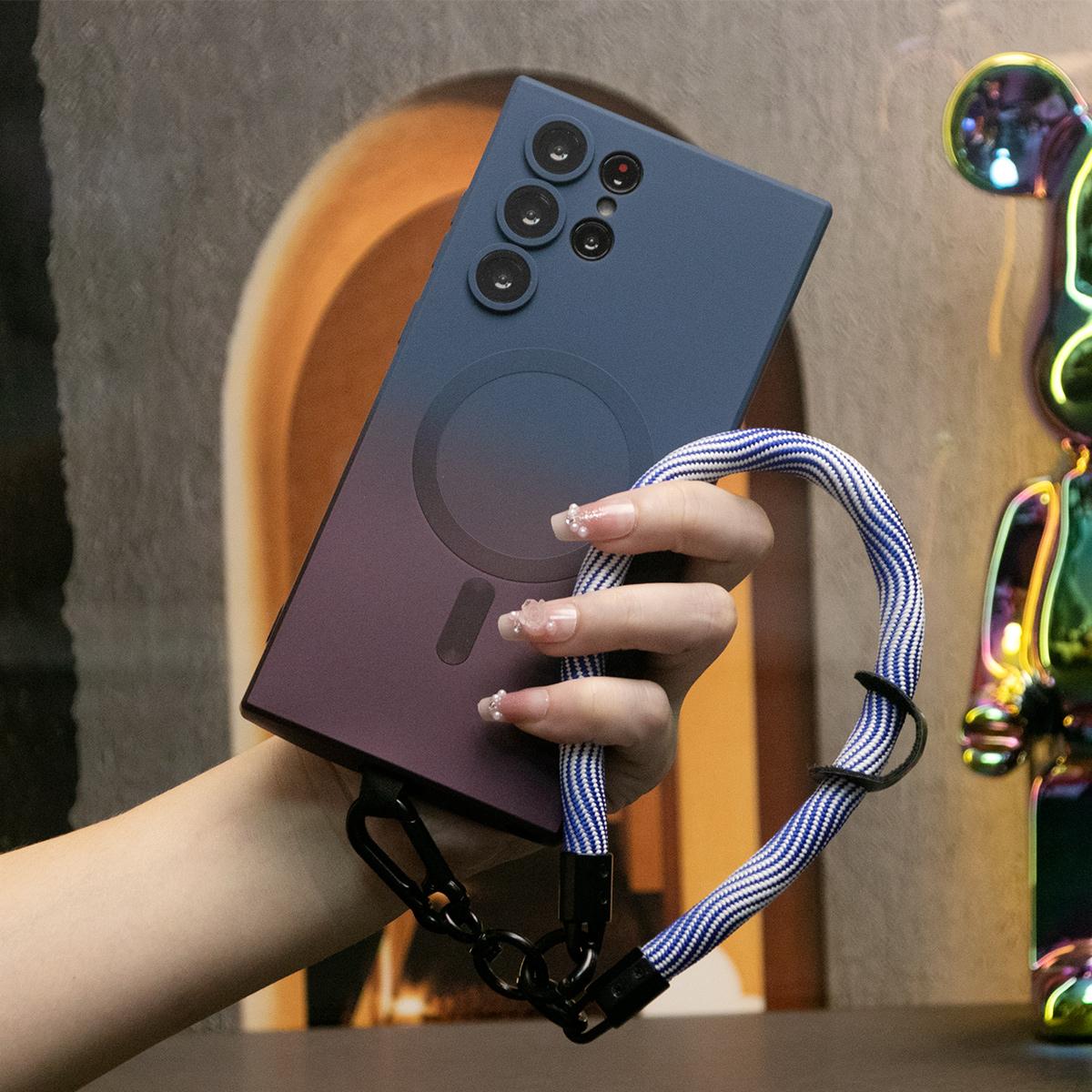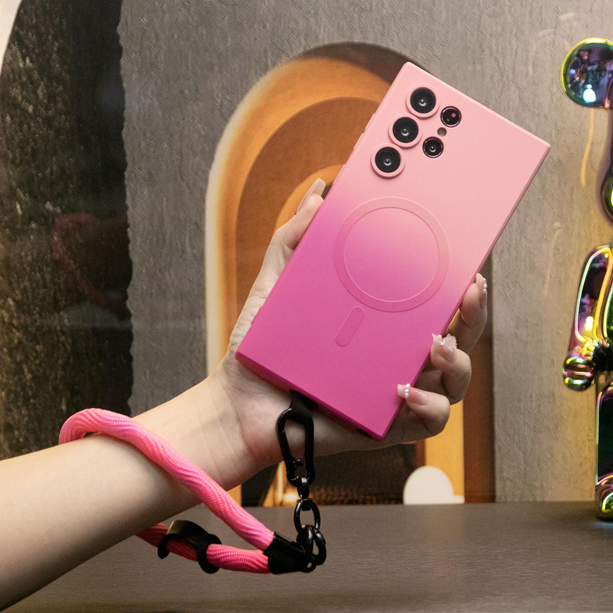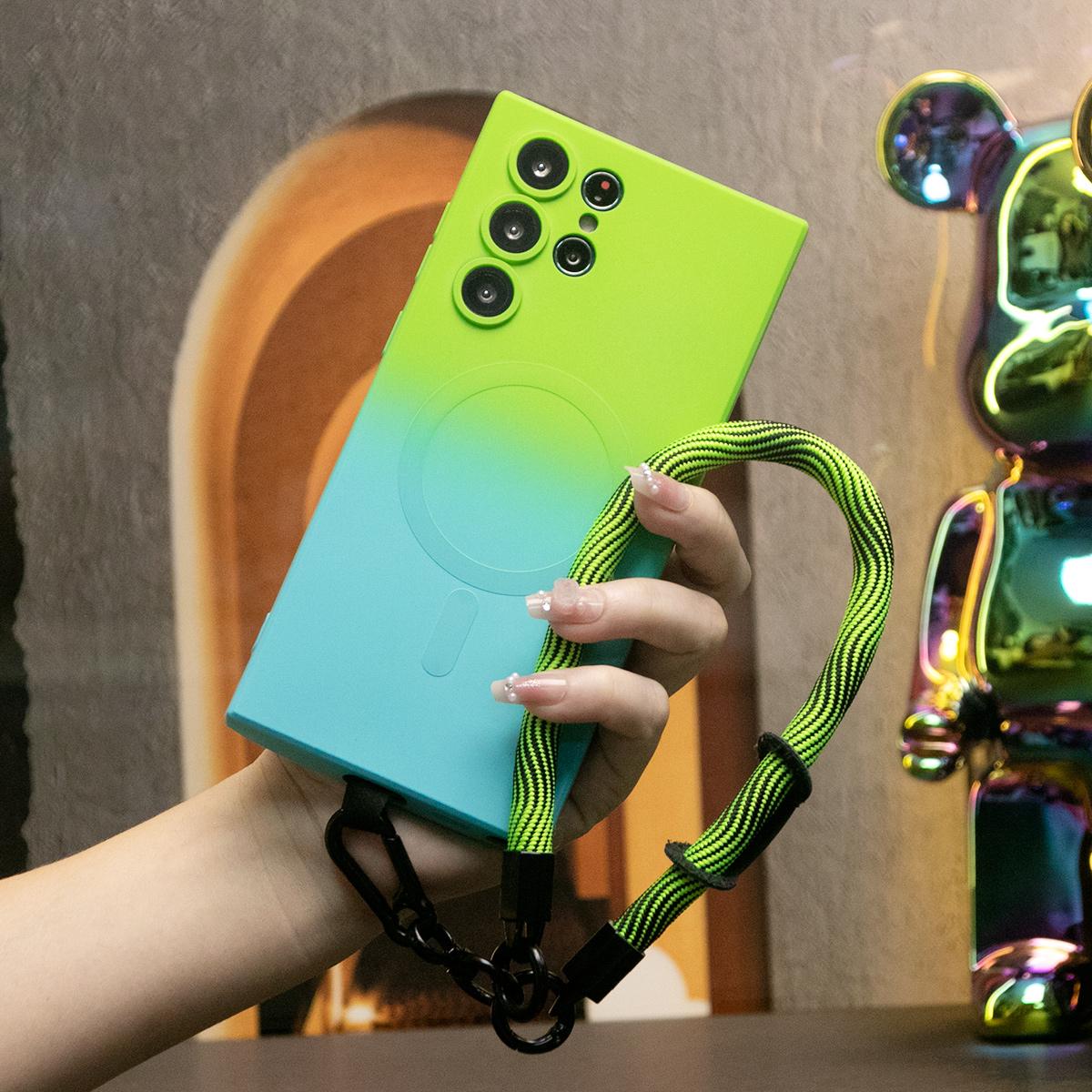 Gradient Color Magnetic Wireless Charge Matte Case with 10mm Wave Multifunctional Rope For Samsung Galaxy S24 S23 S22 S21 Plus Ultra Note 20 Ultra Wireless Charging Soft Bumper Cover