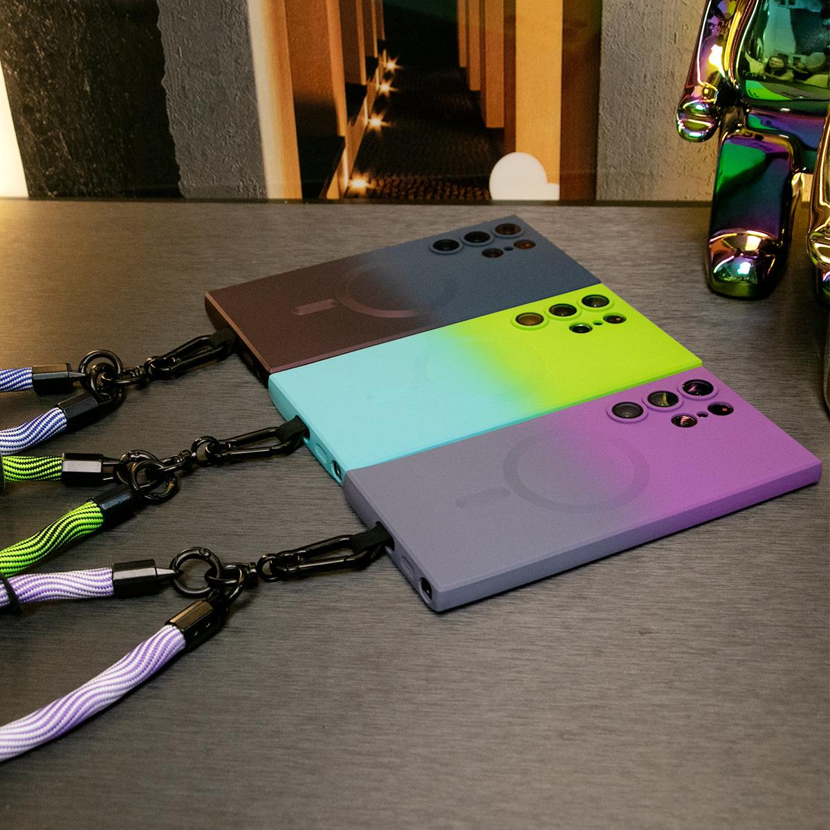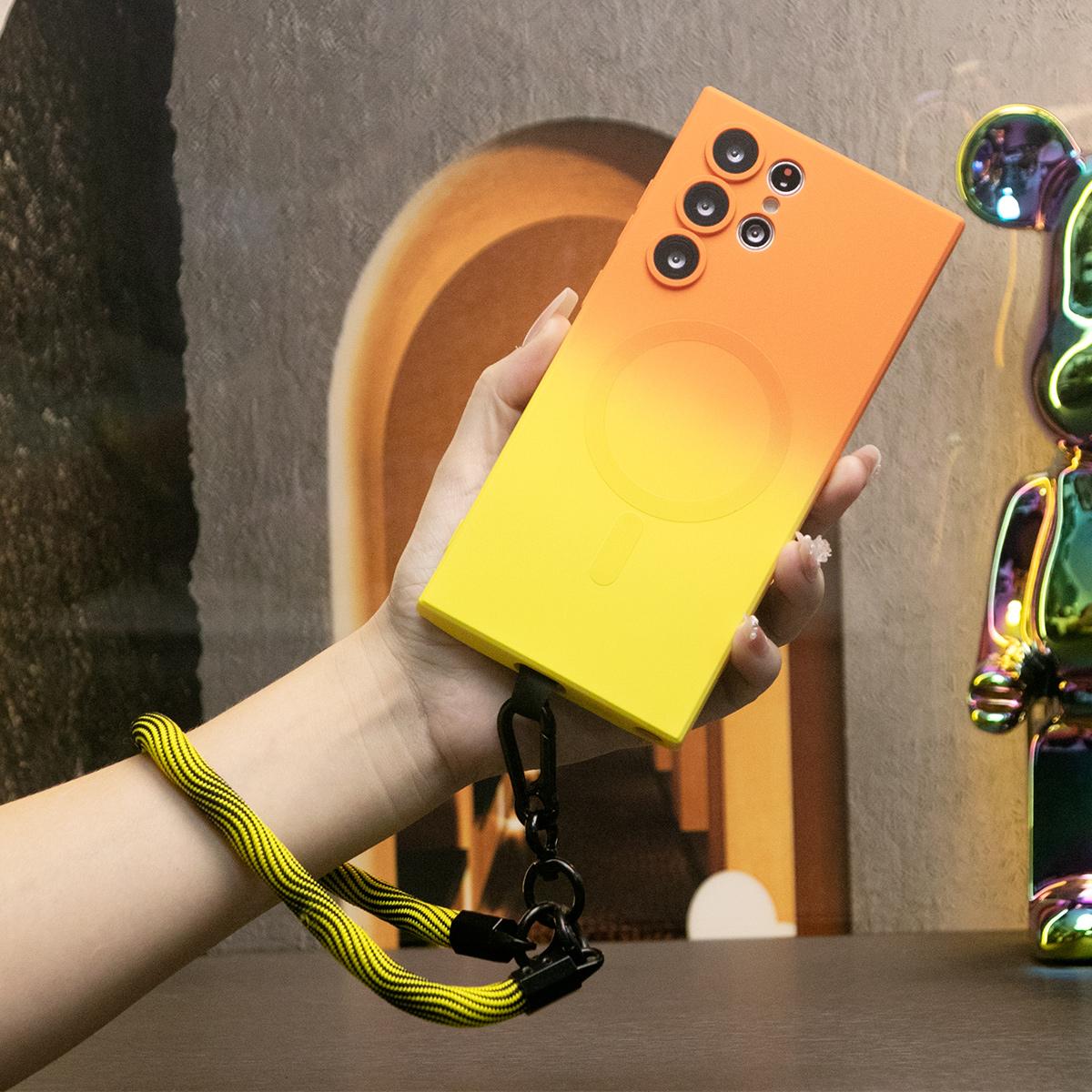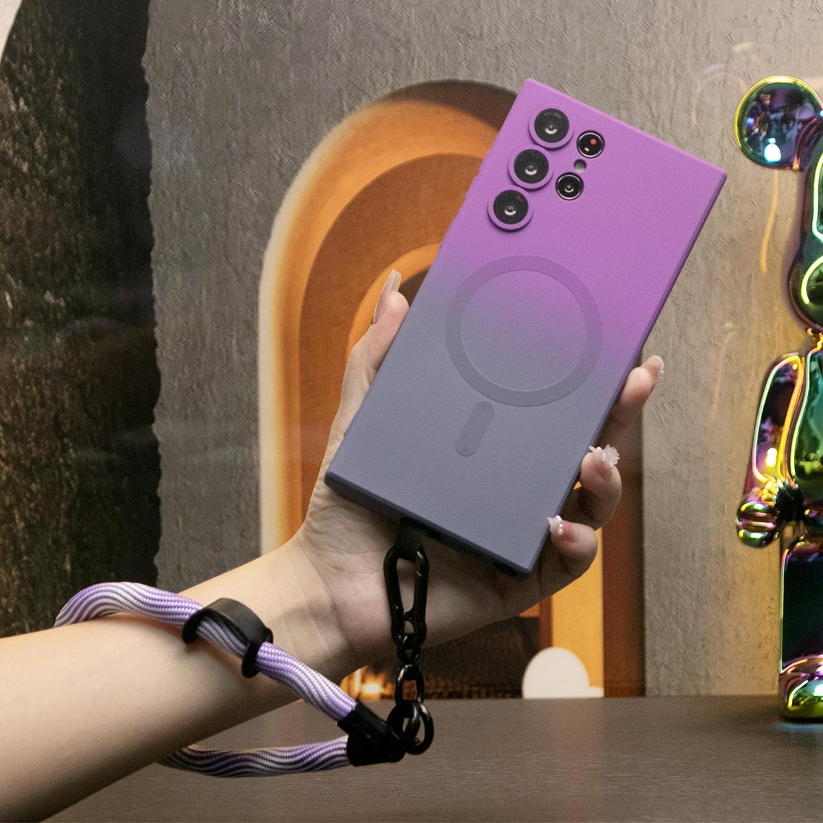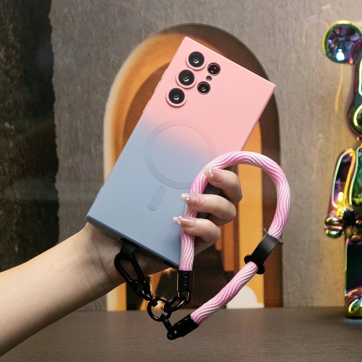 Gradient Color Magnetic Wireless Charge Matte Case with 10mm Wave Multifunctional Rope For Samsung Galaxy S24 S23 S22 S21 Plus Ultra Note 20 Ultra Wireless Charging Soft Bumper Cover