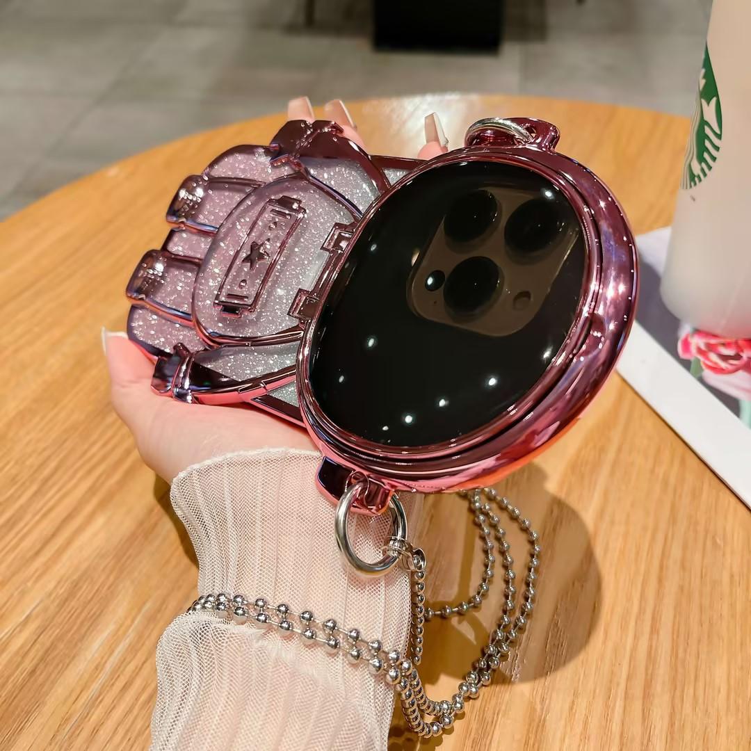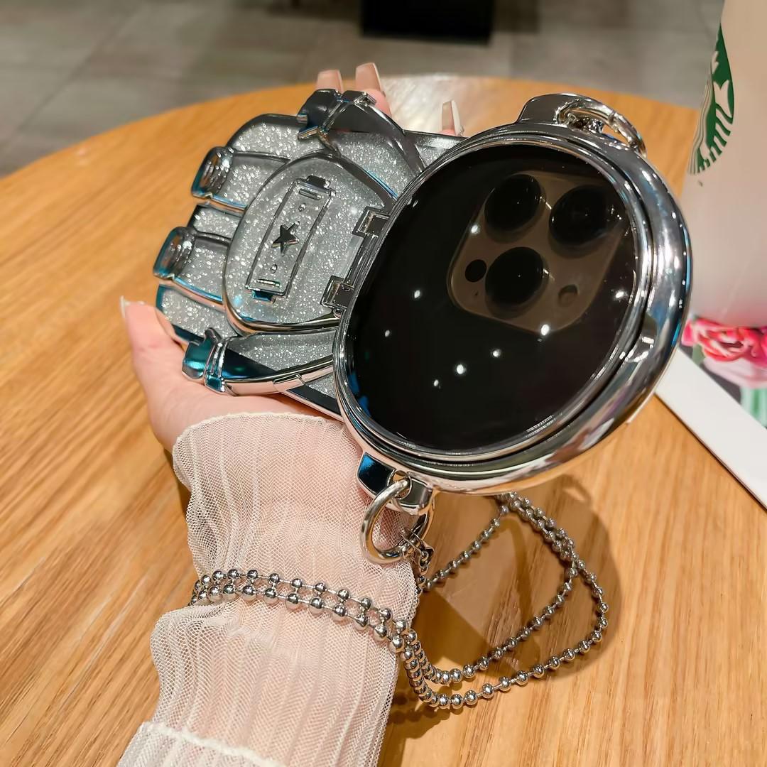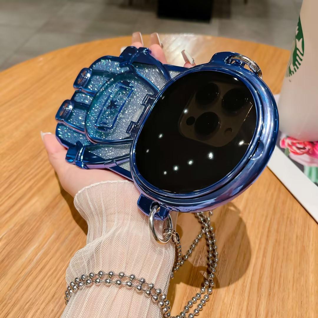 Luxury Glitter Diagonal Hanging Chain Plating Mirror Astronaut Case For iPhone 16 15 14 13 12 Pro Max Fashion Bracket Square Case Back Cover