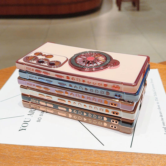 Plating Love Heart TPU Phone Case with Metal Rotating Magnetic Kickstand For Samsung S25Ultra S24 S23 S22 S21 Shockproof Support Wireless Charging Soft Full Cover