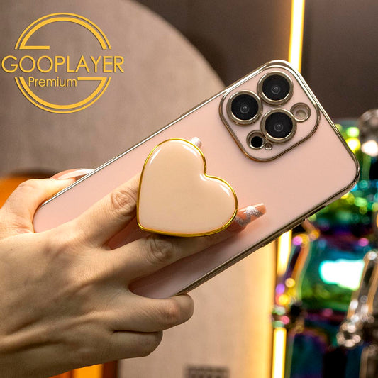 Coque de téléphone avec béquille en forme de cœur plaqué pour iPhone 16 15 14 13 Pro Max