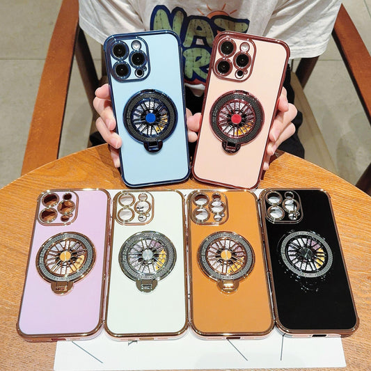 Plating Love Heart TPU Phone Case with Metal Magnetic Gyro Rotating Kickstand For iPhone 16ProMax 15 14 13 12 Shockproof Support Wireless Charging Soft Full Cover