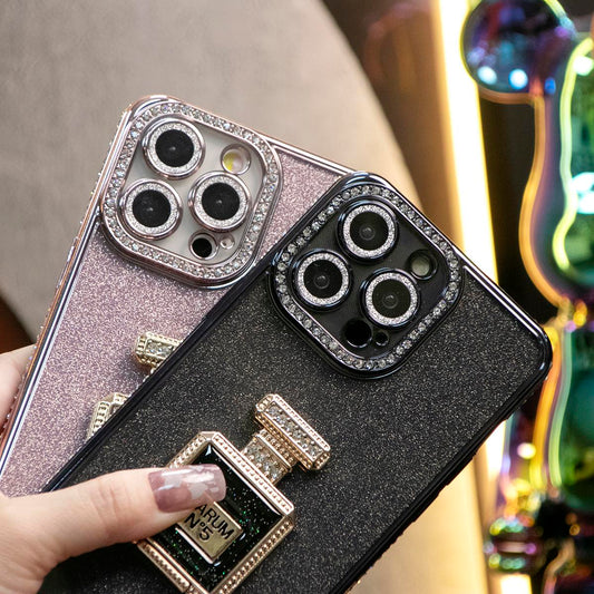 Coque de téléphone avec miroir en forme de bouteille de parfum à paillettes pour iPhone 16 15 14 13 12 Pro Max