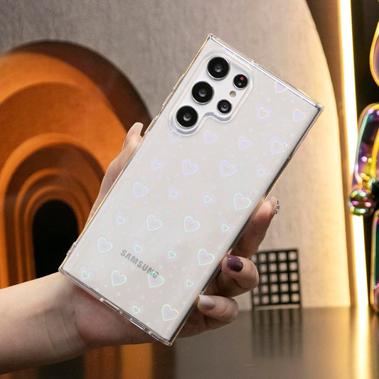 For Samsung S25 S25Plus S25Ultra S24 S24FE S24Plus S24Ultra Phone Case, Clear Laser Love Heart, Glitter Shockproof Hard Full Cover