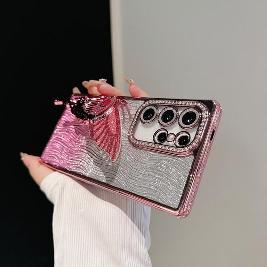 Luxury Glitter Diamond Butterfly Stand Water Ripple Phone Case For Samsung S24 S25 Ultra FE Plus Premium Plating Back Cover