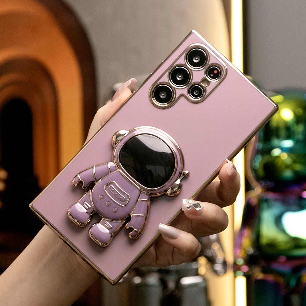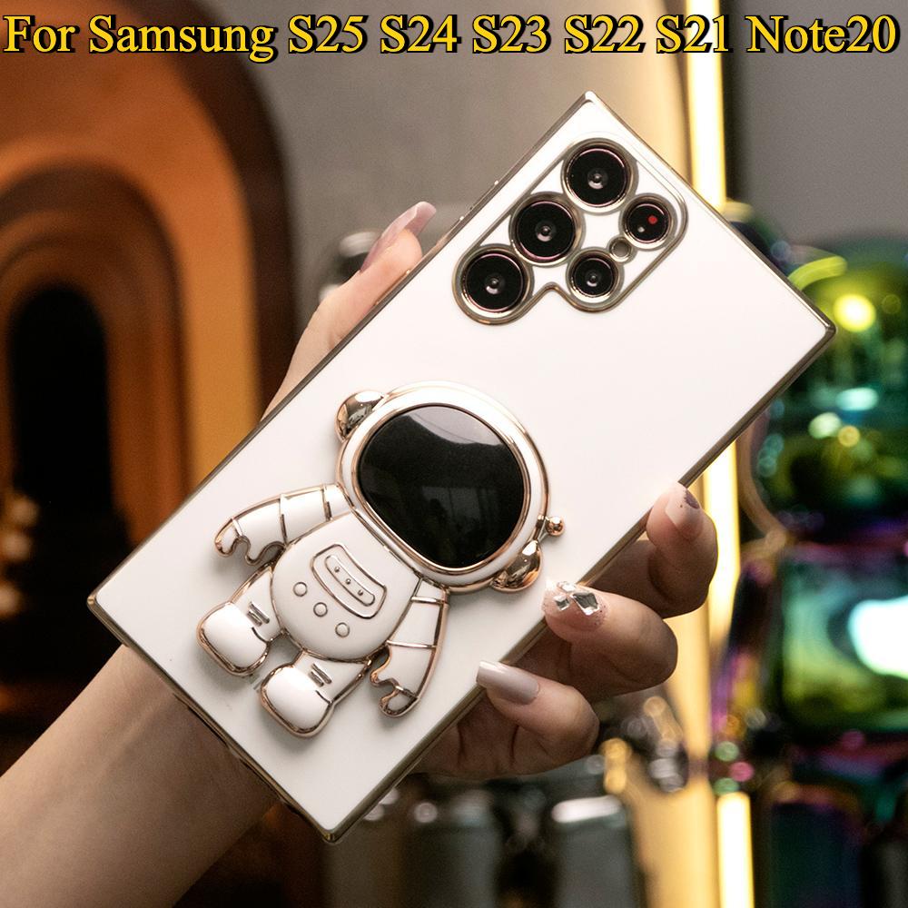 Astronaut Plating Kickstand Soft Phone Case For Samsung S25 S24 S23 S22 S21 Note20