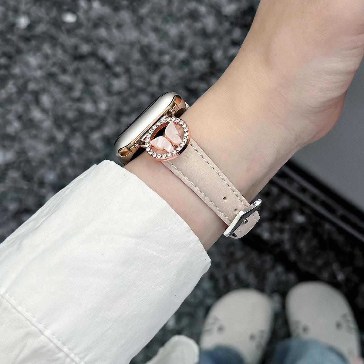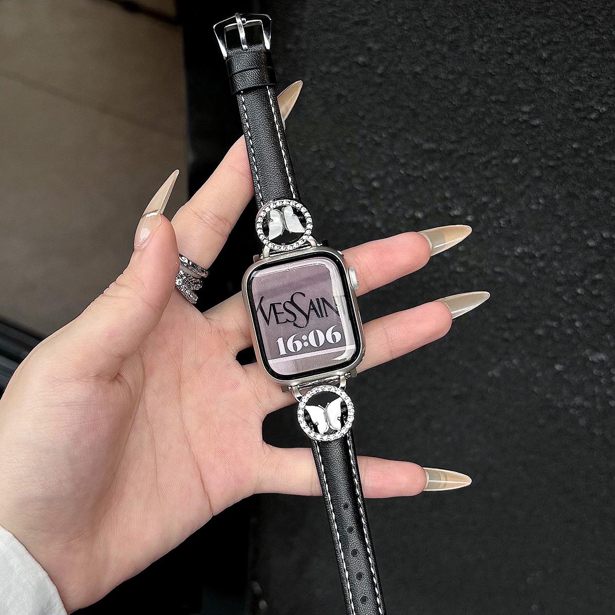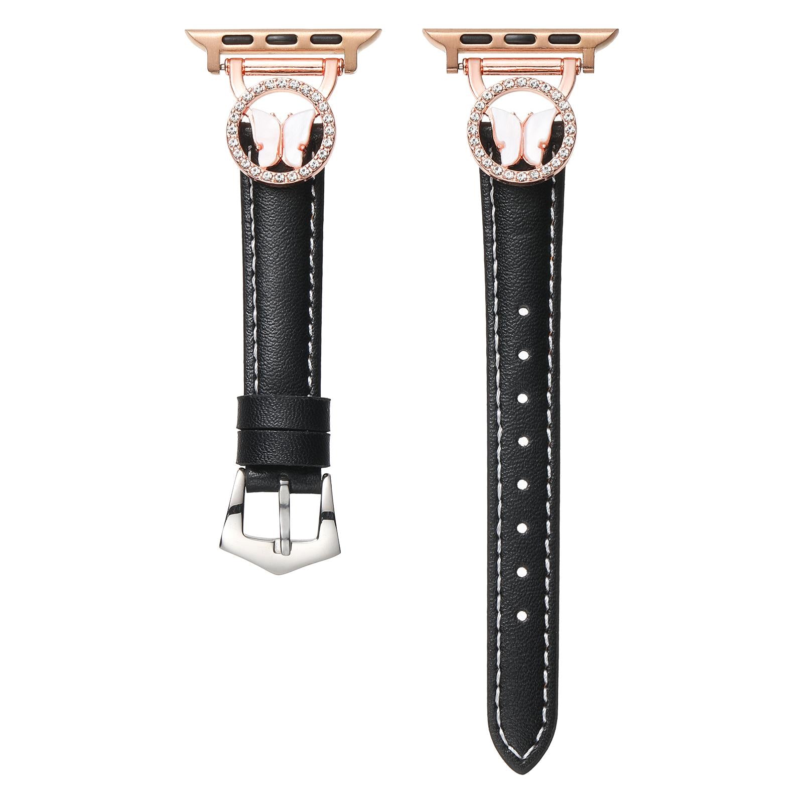 Bling Butterfly Stitching Leather Metal Strap for Apple Watch 44mm Band 45 42 38 41 Ultra 49mm Link Bracelet for IWatch Series 9 8 7 6 SE 5 4
