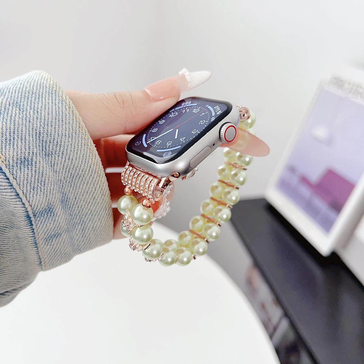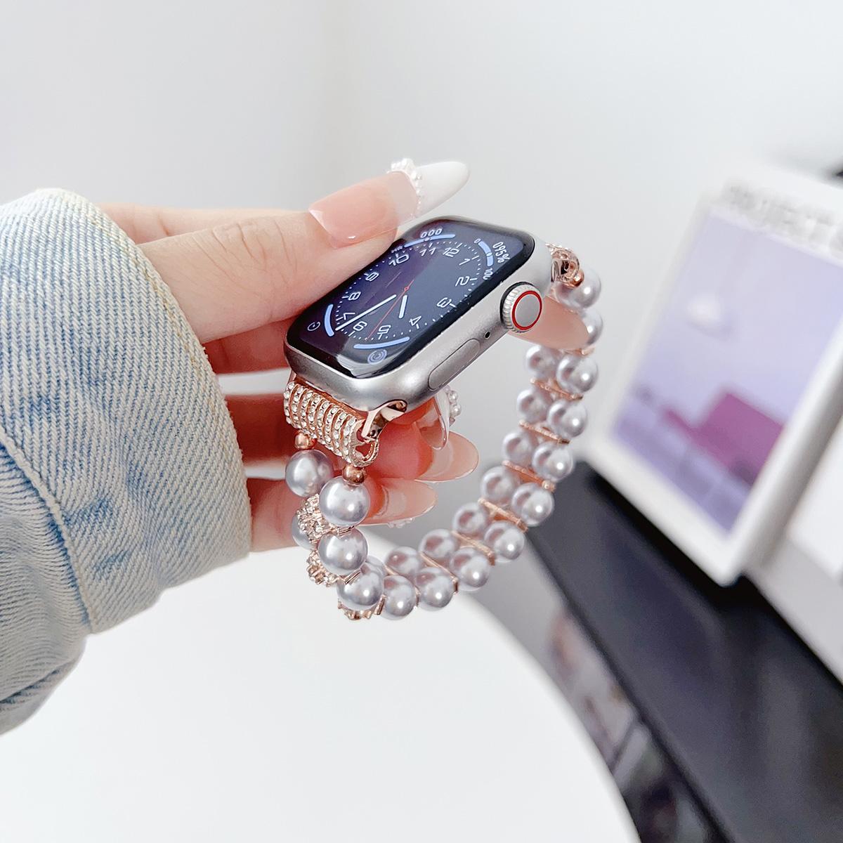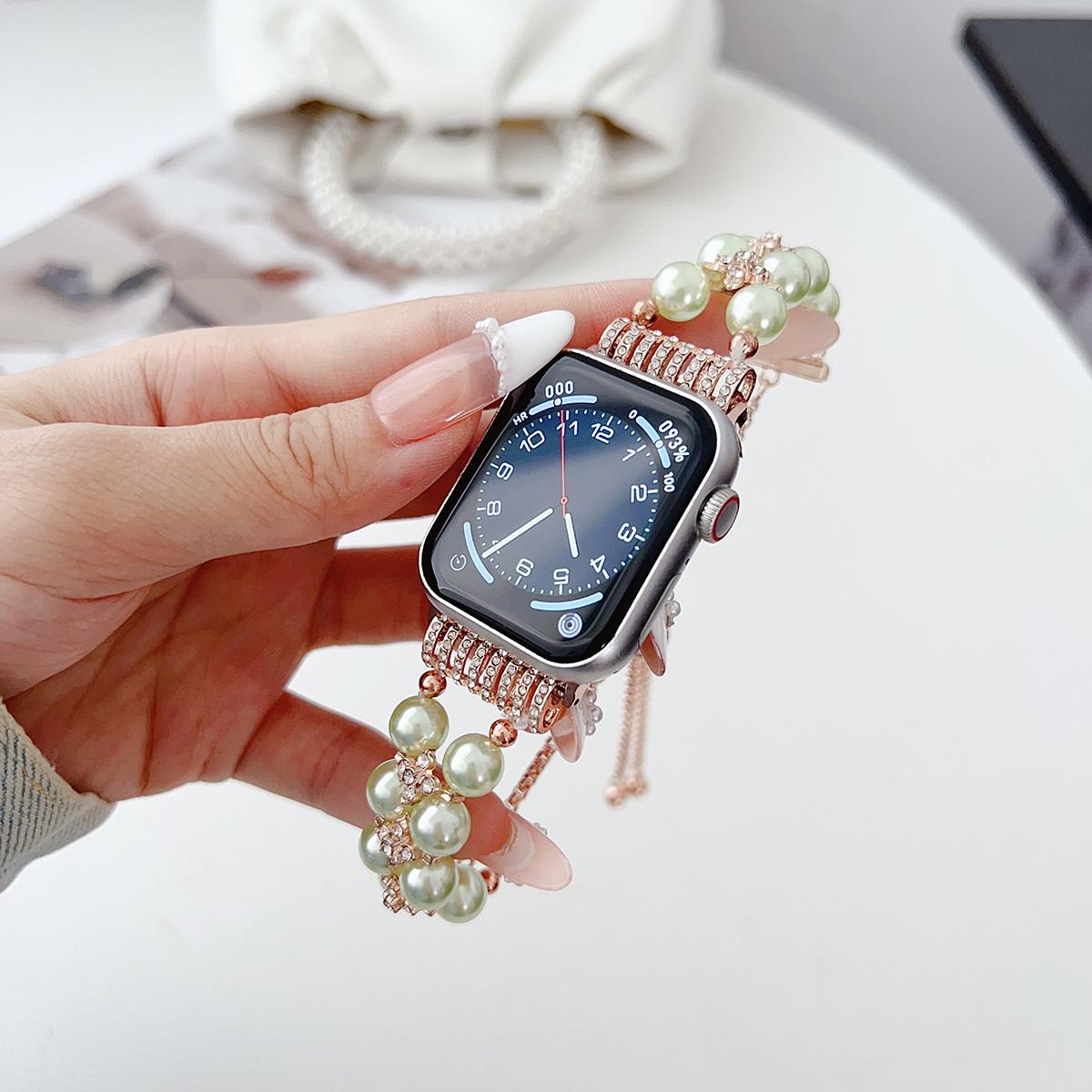 Dual Raw Pearl Chain Strap for Apple Watch 44mm Band 45 42 38 41 Ultra 49mm Link Bracelet for IWatch Series 9 8 7 6 SE 5 4