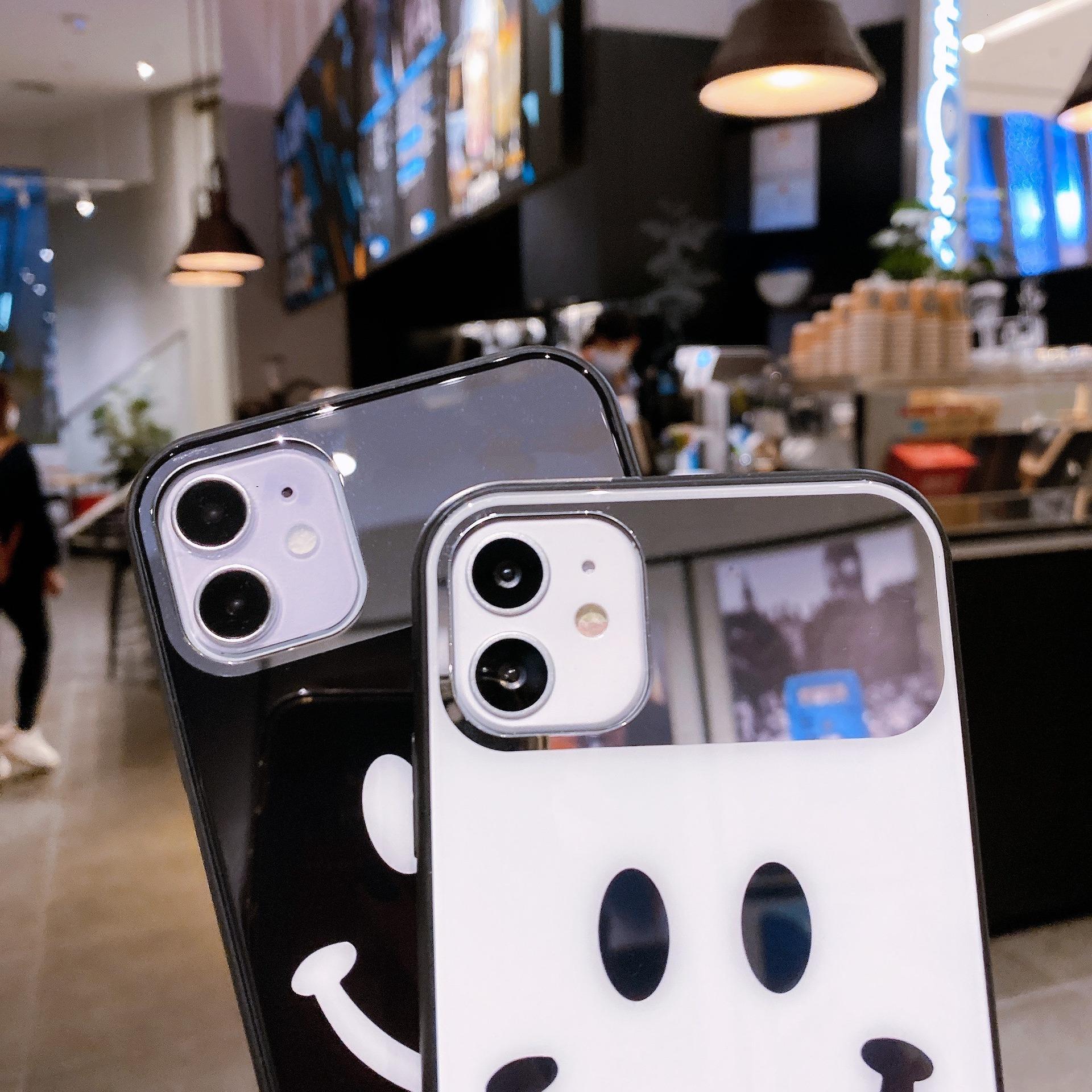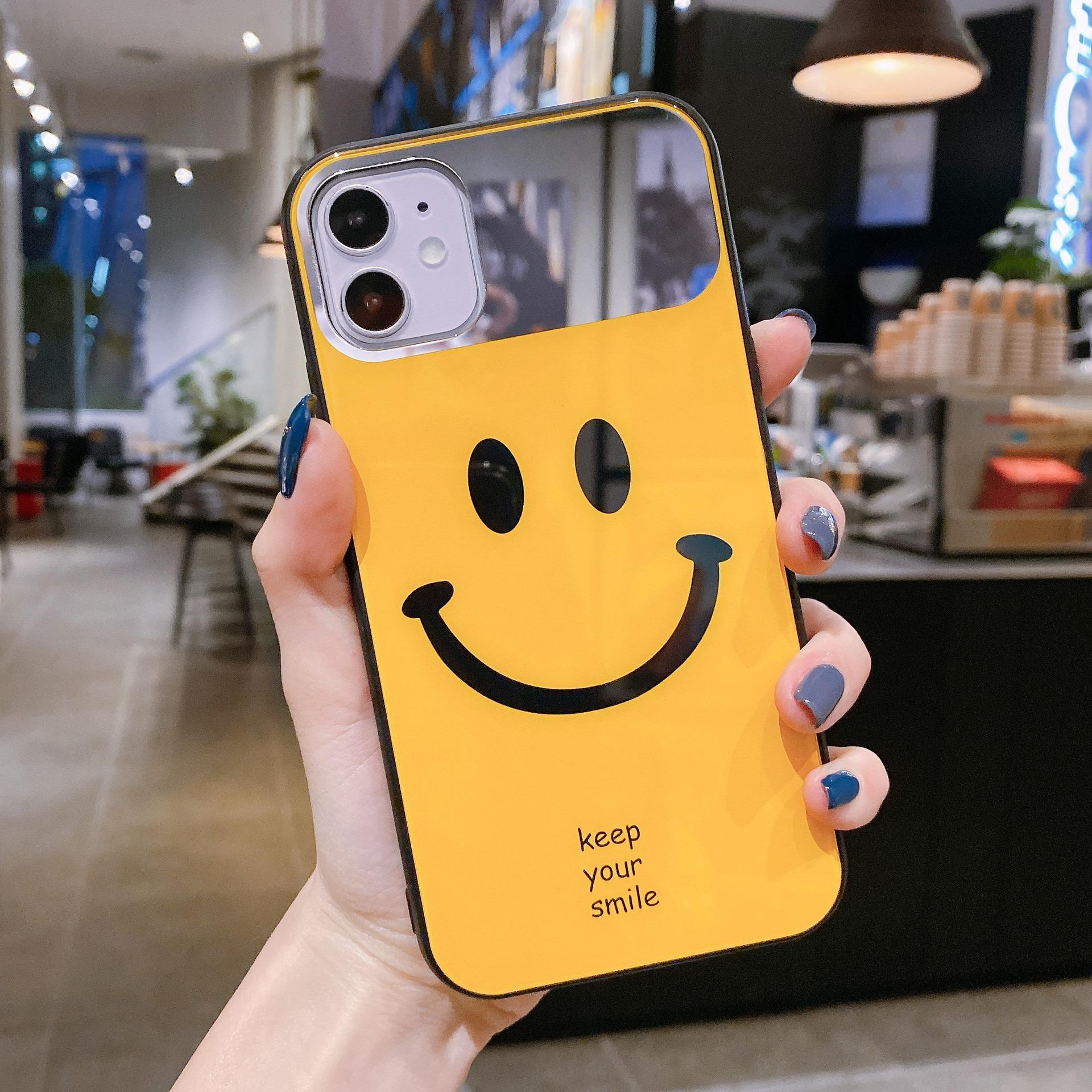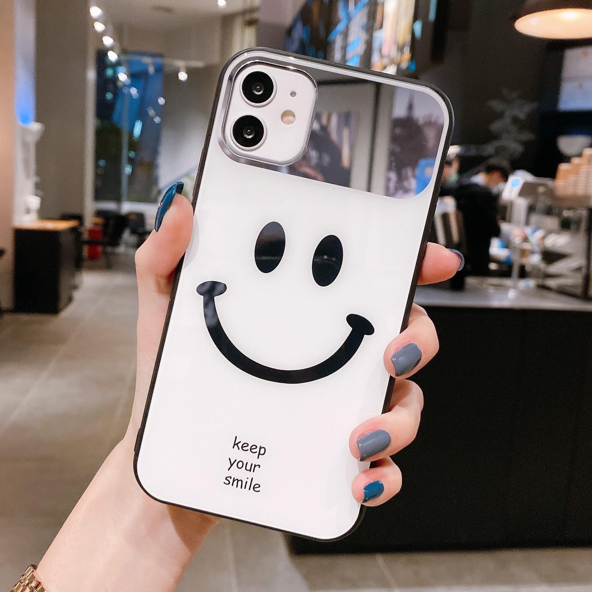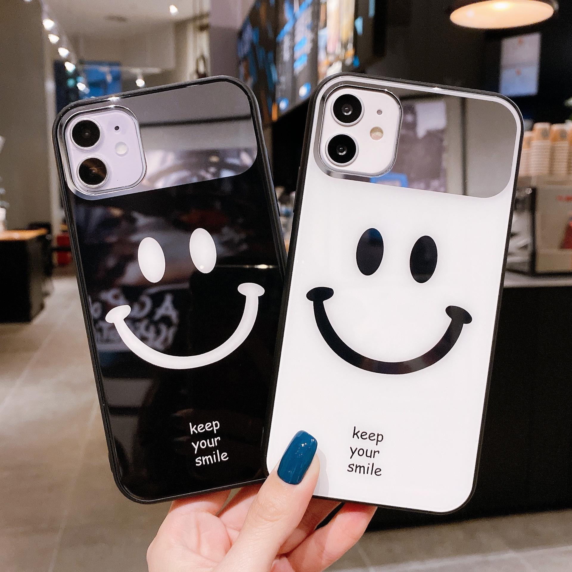For iPhone 16ProMax 16 15 14 13 12 11 XR X/XS XSMax Phone Case, Luxury Glitter Mirror Smiling Face Plating Acrylic, Camera Protection Hard Full Cover