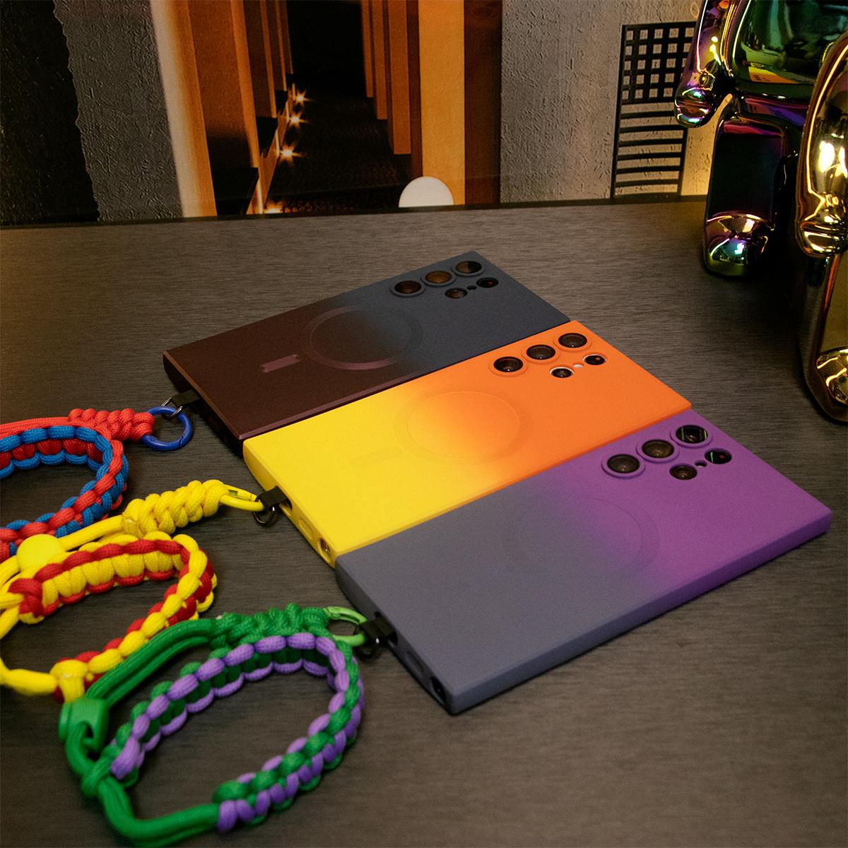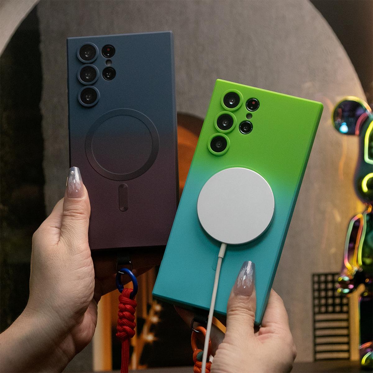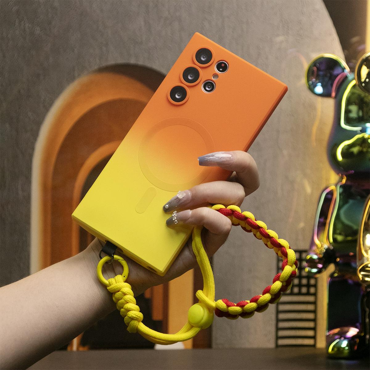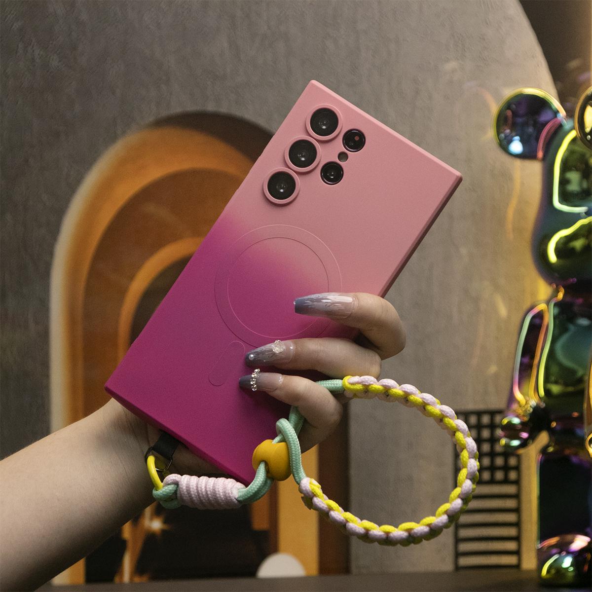 Coque de chargement sans fil magnétique dégradée de couleur mate avec sangle tissée réglable pour Samsung Galaxy S24FE S24Ultra S24 S23 S22 S21 Plus Ultra Note 20 Ultra Coque de protection souple à chargement sans fil