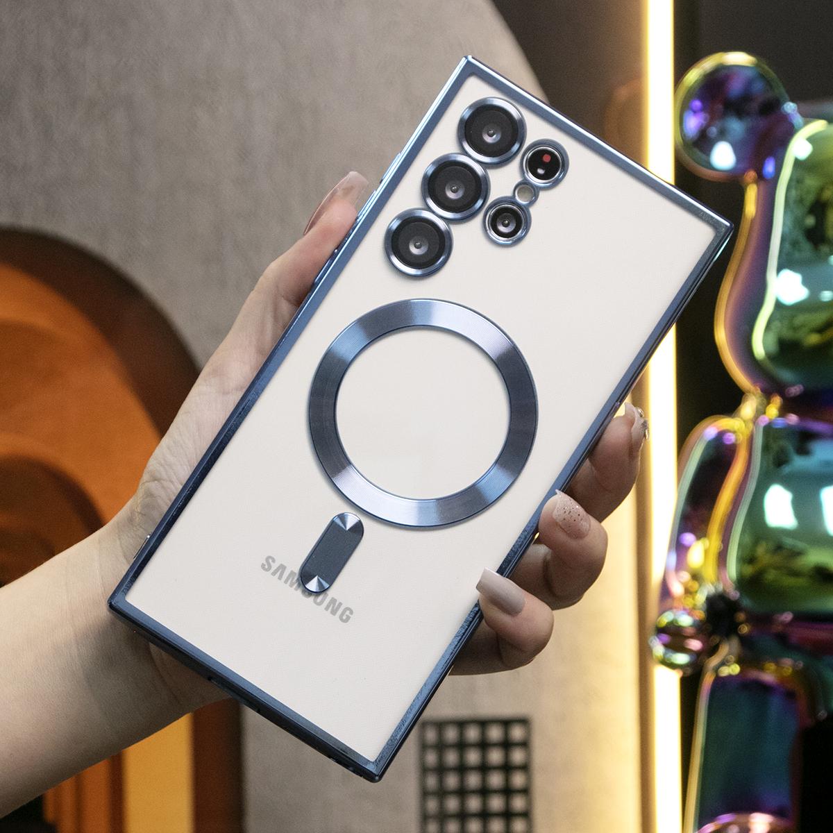 Plating Magnetic Wireless Charge Transparent Soft Phone Case For Samsung S25 S24 S23 S22 S21 Note20