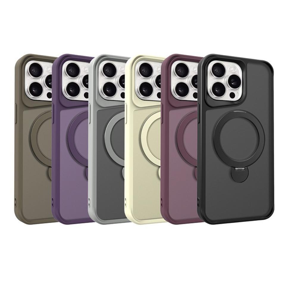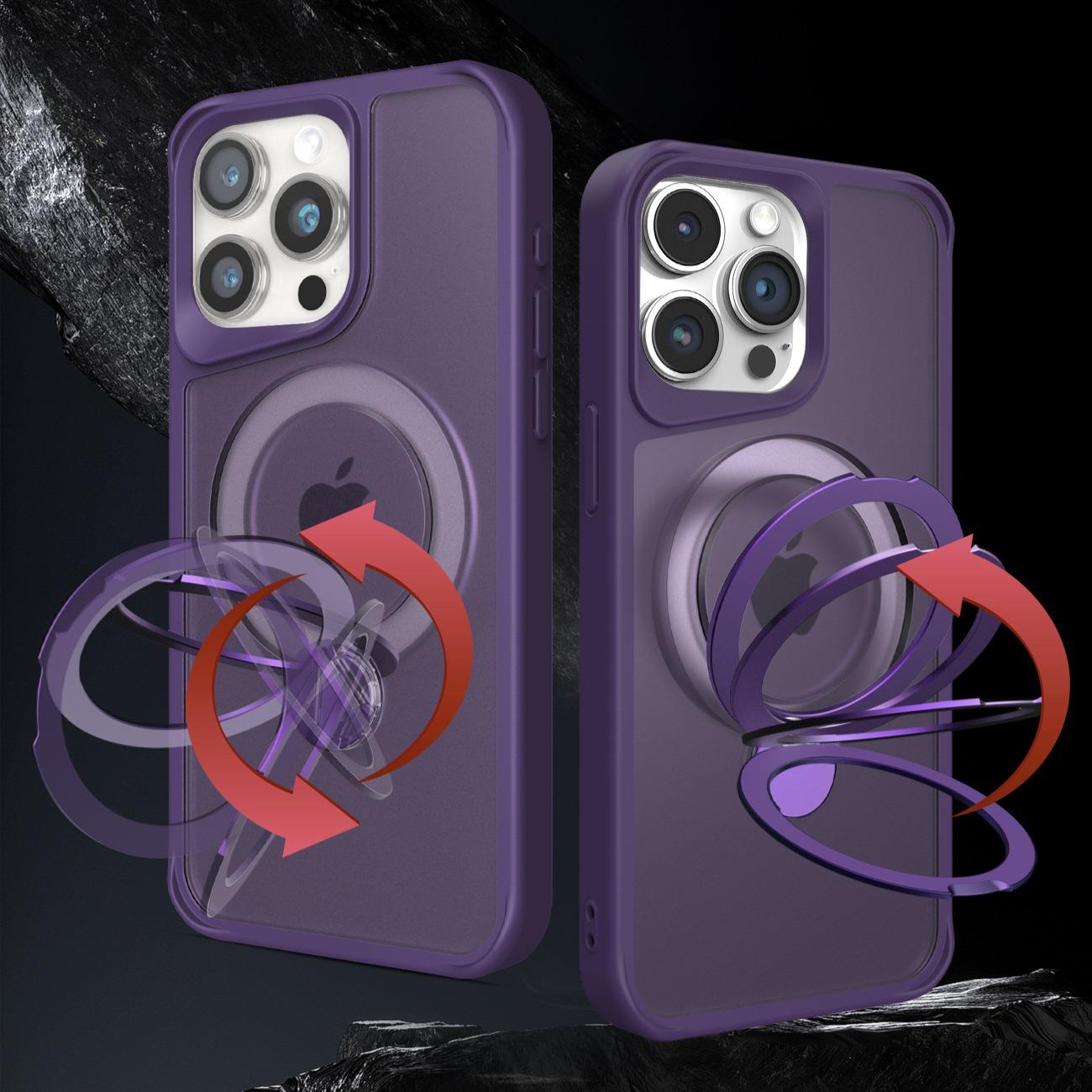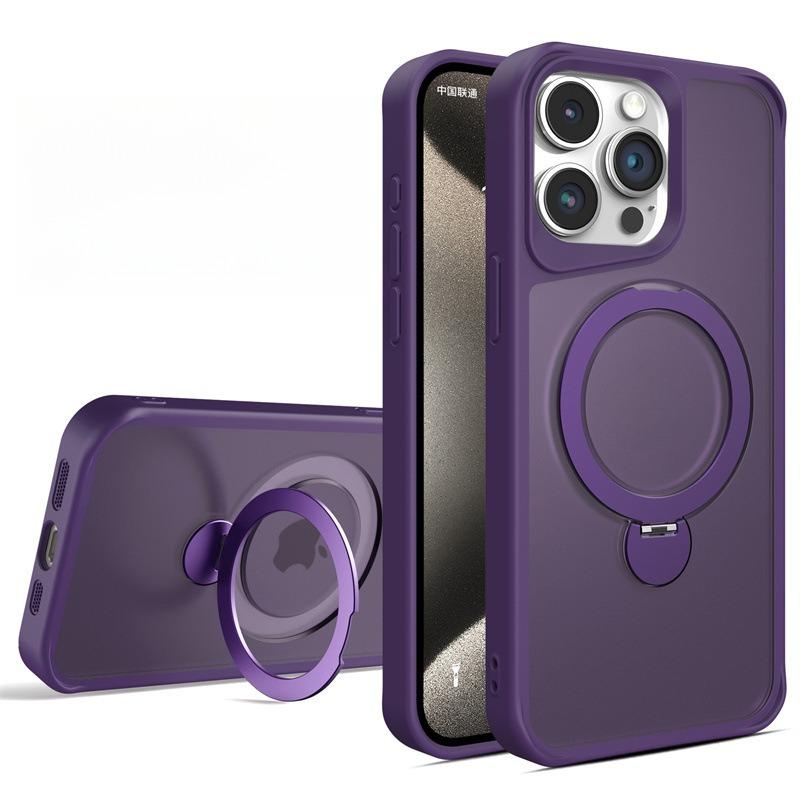 Slim PC Strong Magnetic Phone Case with 360 Rotating Metal Kickstand For iPhone 16ProMax 15 14 13 12 11 Skin Feel Bumper Shockproof Hard Full Cover