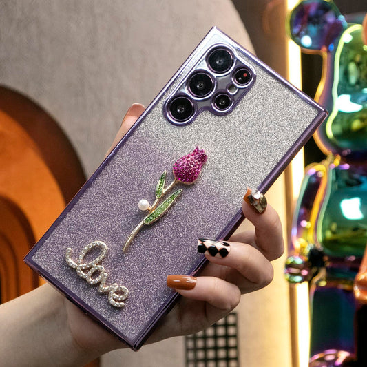 Luxury Diamond Plating Rose Flower Glitter Clear Gradient TPU Plating Shockproof Soft Phone Case For Samsung S24Ultra S24FE S24 S23 S22 S21 FE Plus Ultra