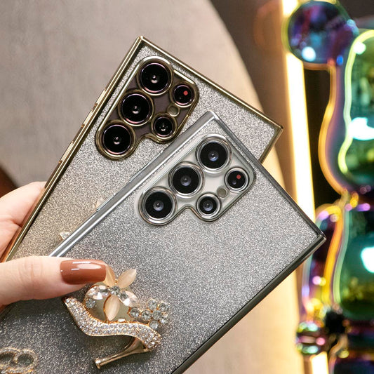 Luxury Diamond High Heels Glitter Clear Gradient TPU Plating Shockproof Soft Phone Case For Samsung S24Ultra S24FE S24 S23 S22 S21 FE Plus Ultra