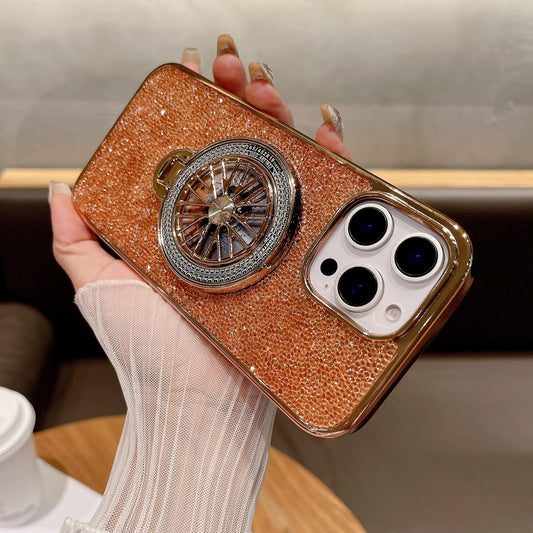 Luxury Rhinestone Glitter Plating Slim PC Phone Case with Gyro Kickstand For Samsung S25Ultra S24 S23 S22 Hard Full Cover