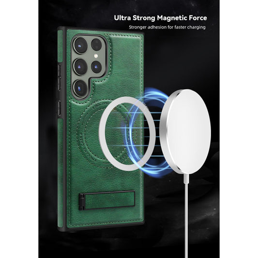 Magnetic Wireless Charging Phone Stand Bracket Leather TPU Silicone Case For Samsung S24 S23 S22 Ultra Plus