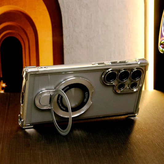 Luxury Plating Four Corners Shockproof Clear Case With Magnetic stand for Samsung Galaxy S24 S23 FE S22 Plus Transparent Hard Acrylic Hybrid Bumper Armor Cover