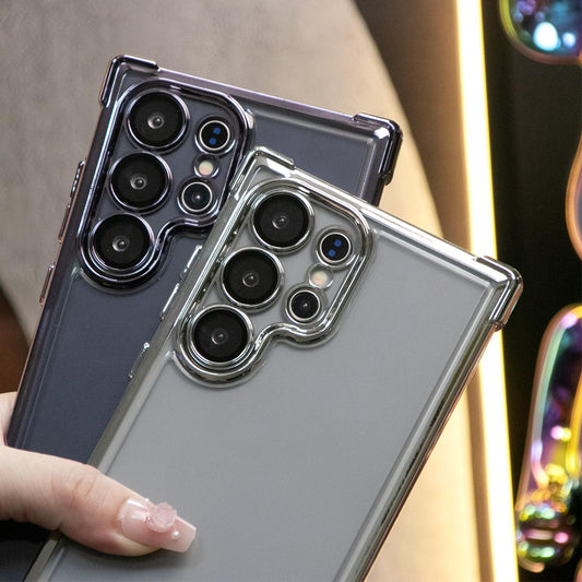 Luxury Plating Four Corners Shockproof Clear Case for Samsung S25 S24 S23 S22 A55 A54 Transparent Hard Acrylic Hybrid Bumper Armor Cover