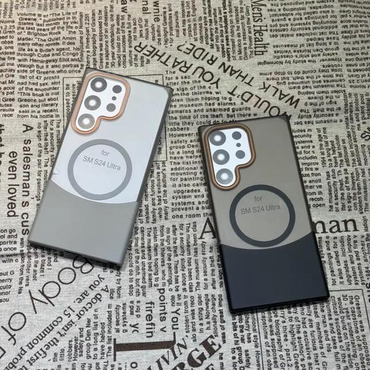Matte Clear Magnetic Two-tone Slim PC Phone Case For Samsung S25Ultra S24 S23 S22 S21 Note20Ultra Transparent Skin Feel Bumper Shockproof Hard Full Cover