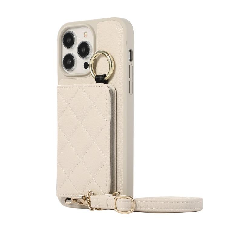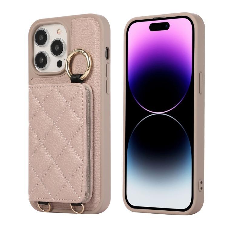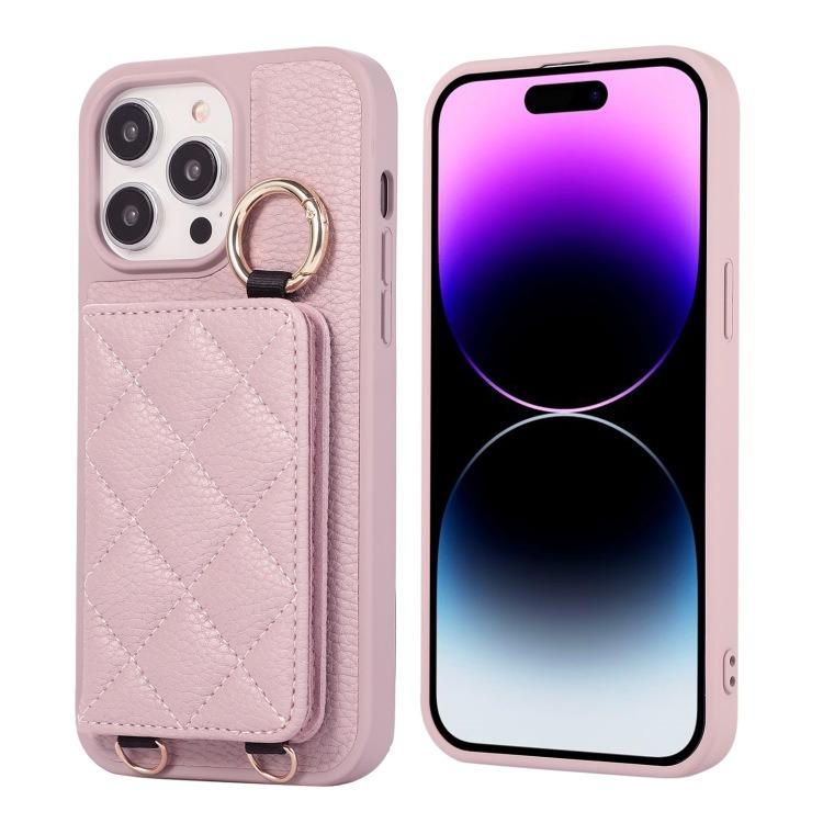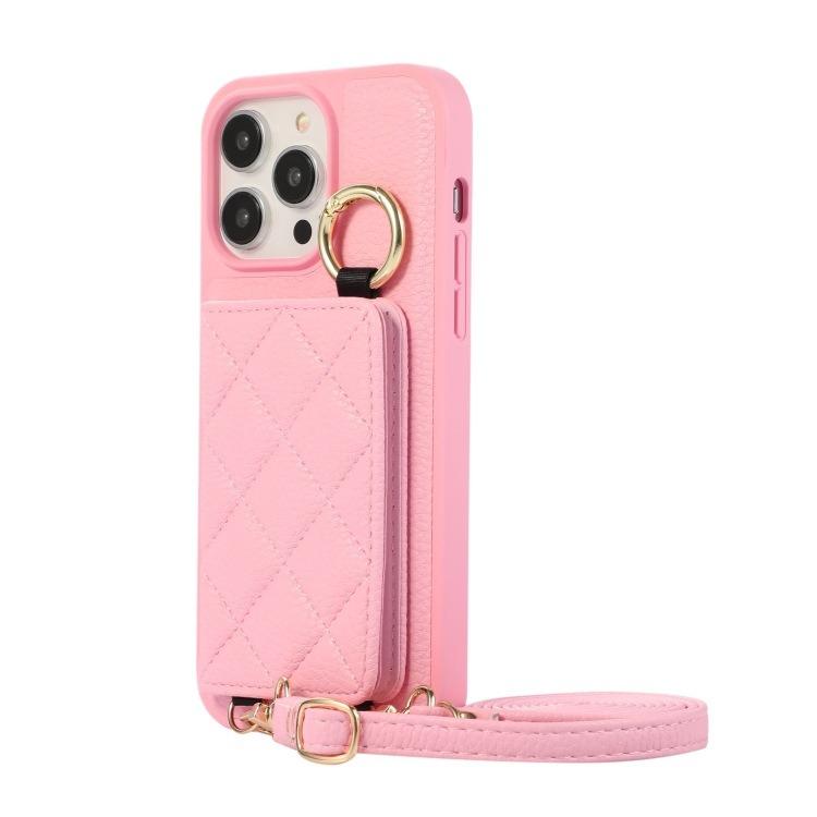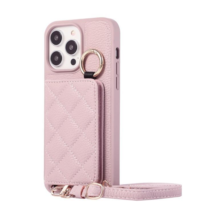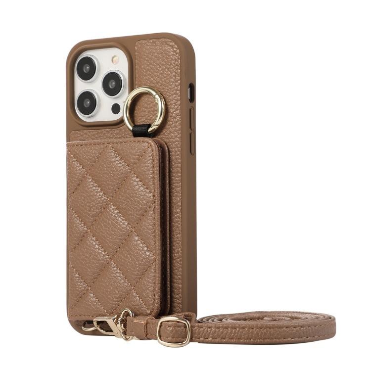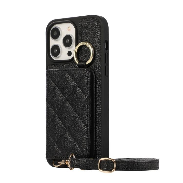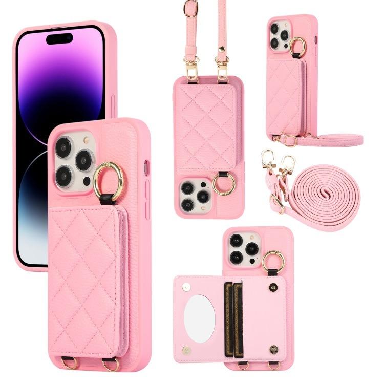 For iPhone 16ProMax 16 15 14 13 12 11 Leather Phone Case with Double Folding Wallet Lanyard, Anti-Fall Card Slot Mirror Ring Kickstand Shockproof Business Hard Full Cover