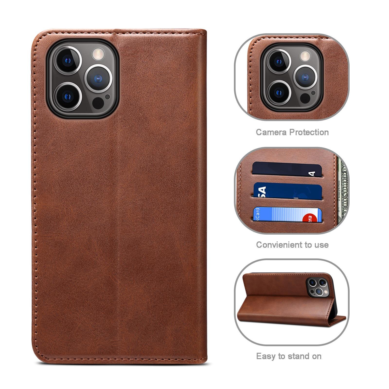 For iPhone 16ProMax 16 15 14 13 12 11 X/XS XR XSMax Phone Case, Smooth Surface Flip Wallet Case For Women Men Durable Faux Card Slot Leather Kickstand Magnetic Clasp Shockproof Phone Case