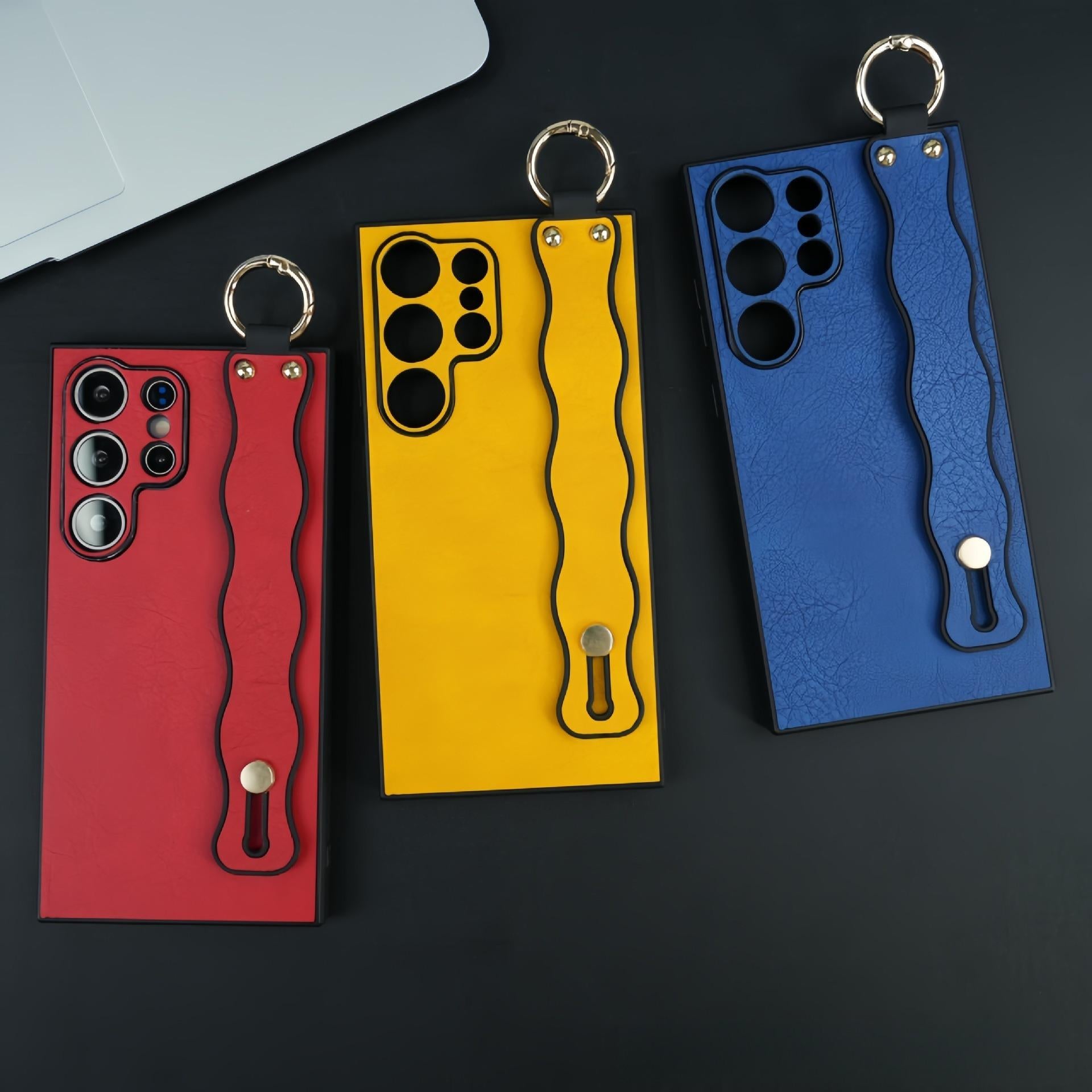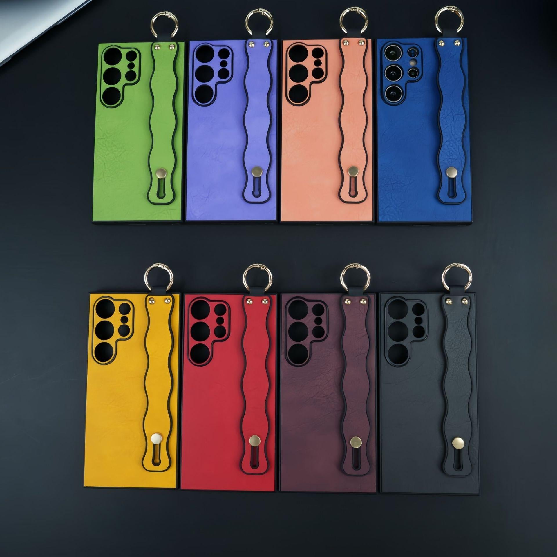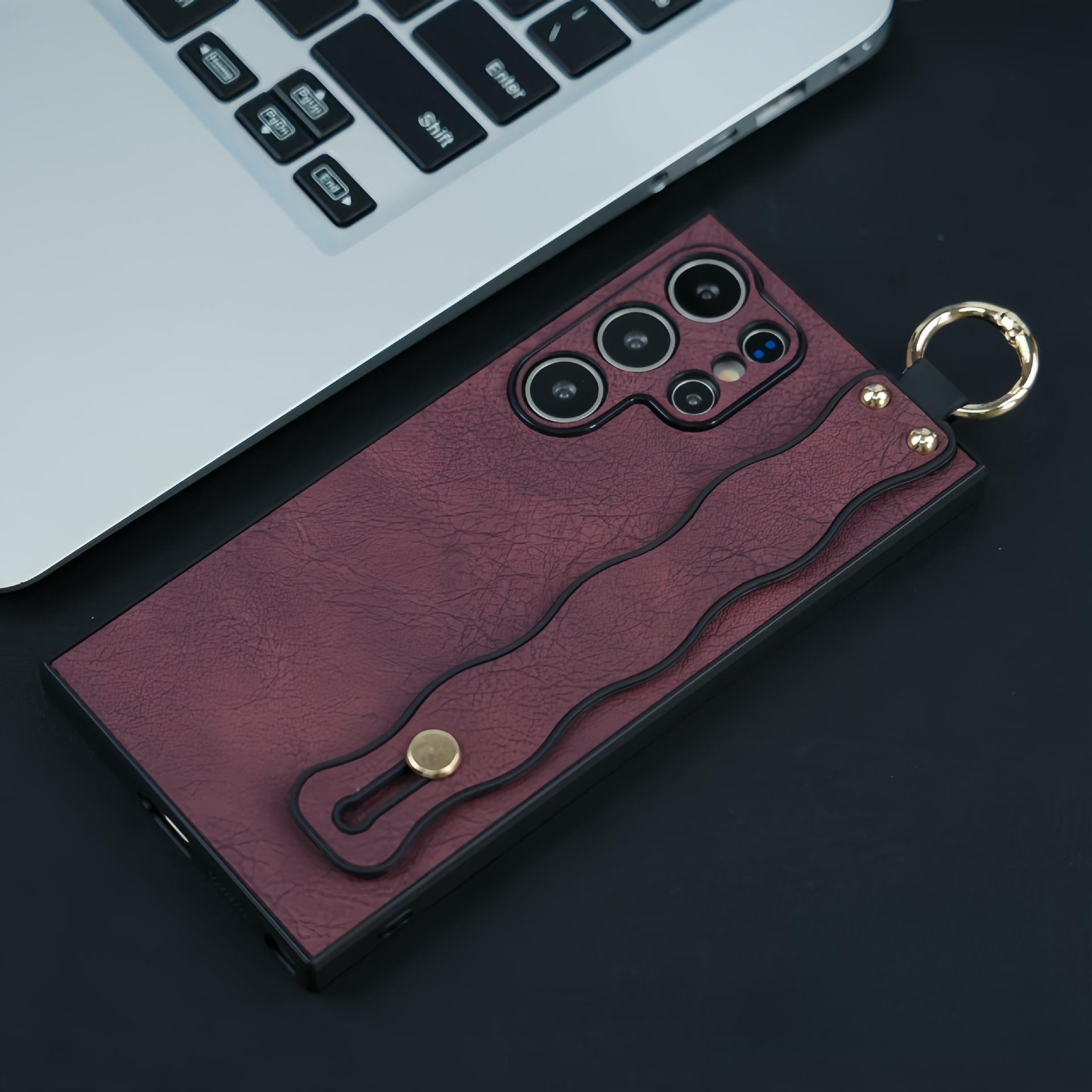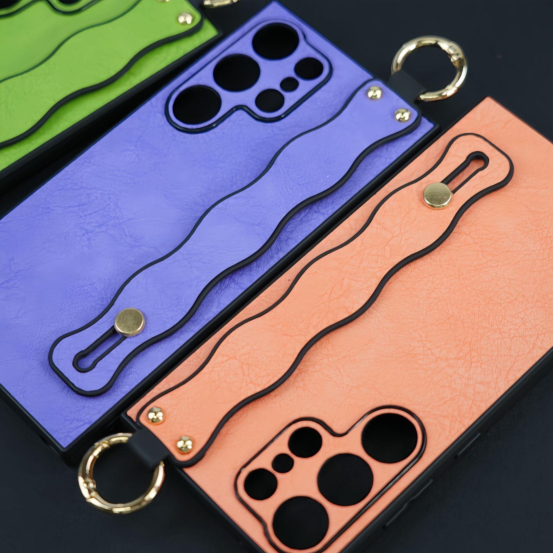 For Samsung S25Ultra S25 S24 S23 S22 S21 Case With Wave Wristband, Matte Durable Faux Leather Kickstand Shockproof Phone Case