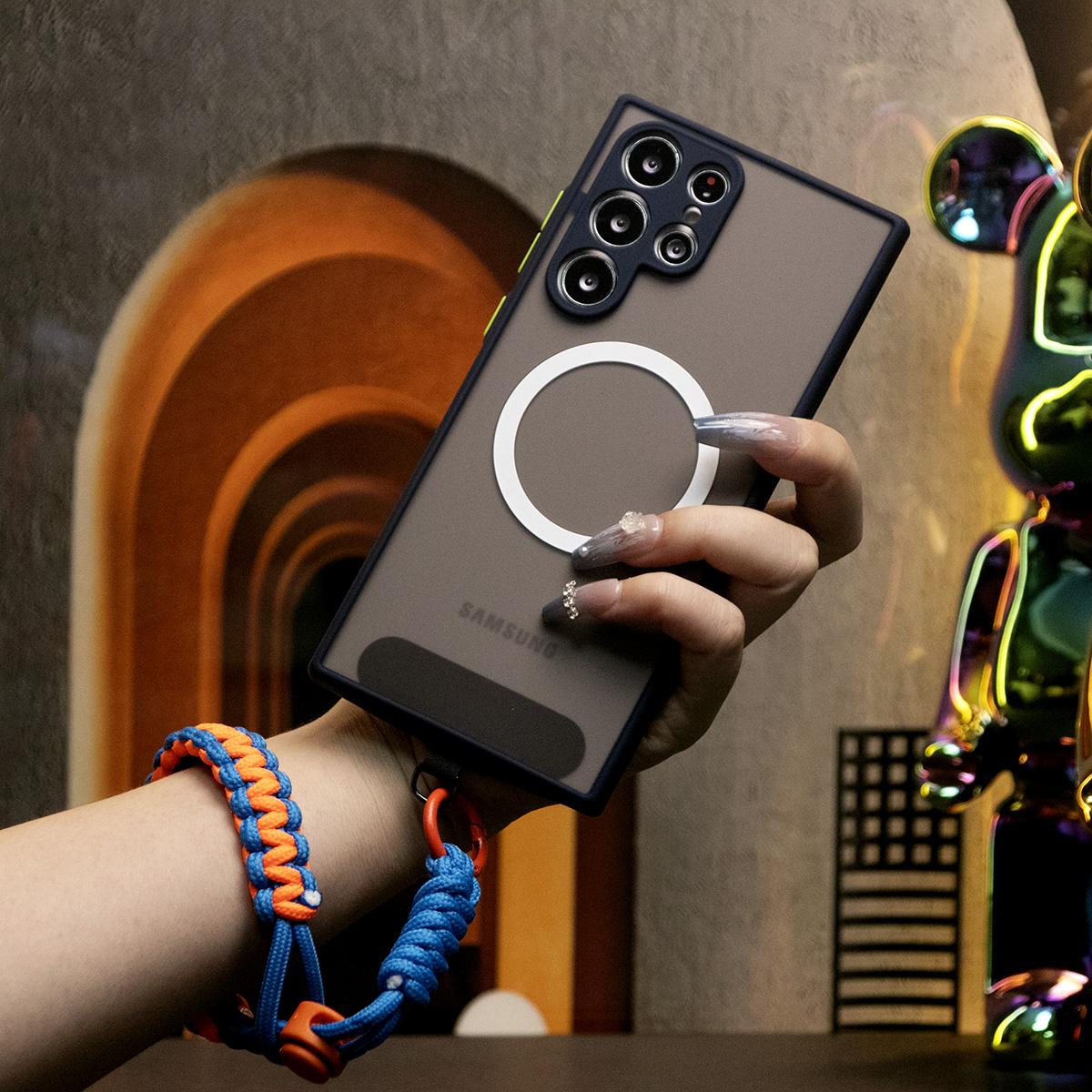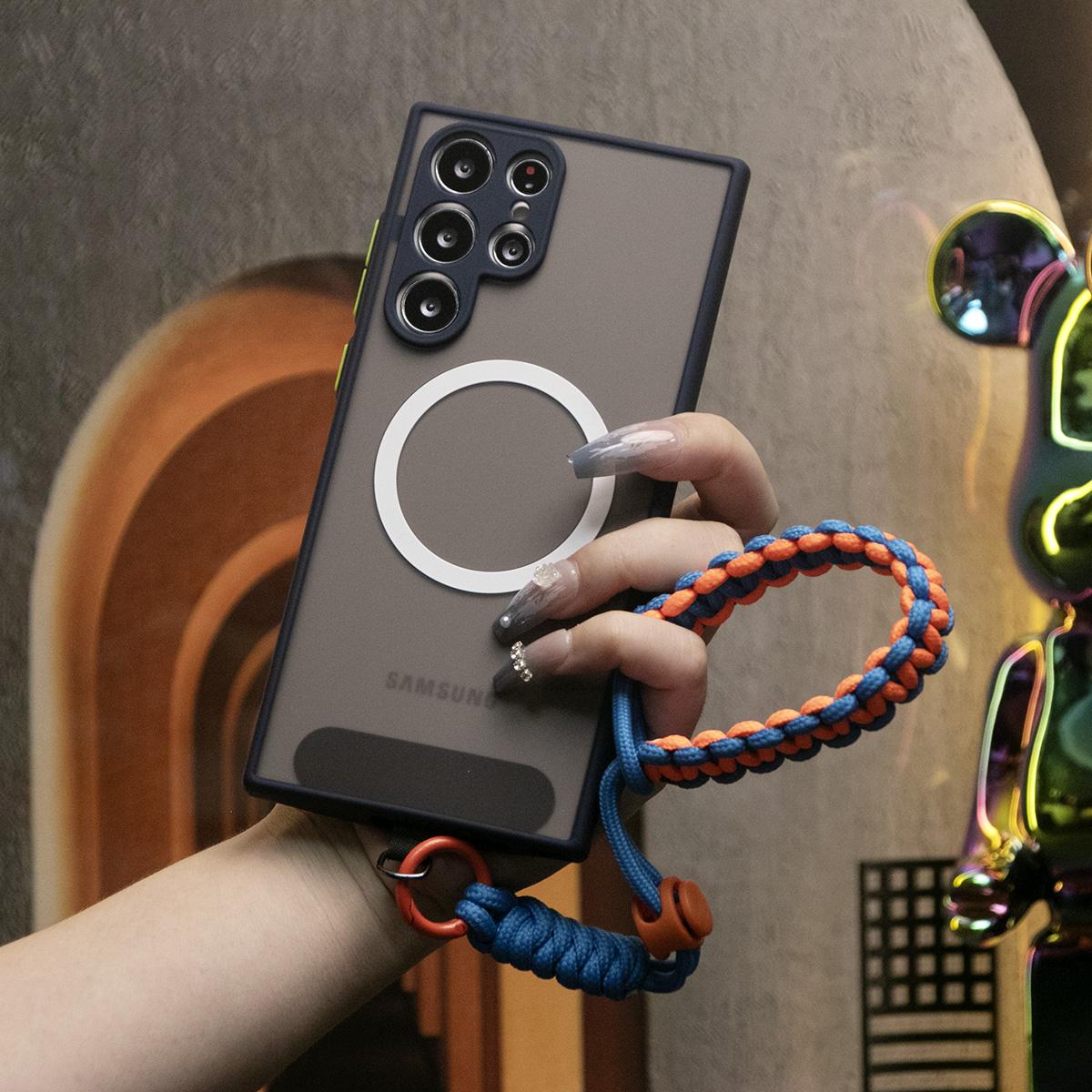 Luxury Matte Clear Support Magnetic With Adjustable Woven Strap For Samsung S24Ultra S24FE S24 S23 S22 S21 Plus FE Ultra Note 20 Ultra