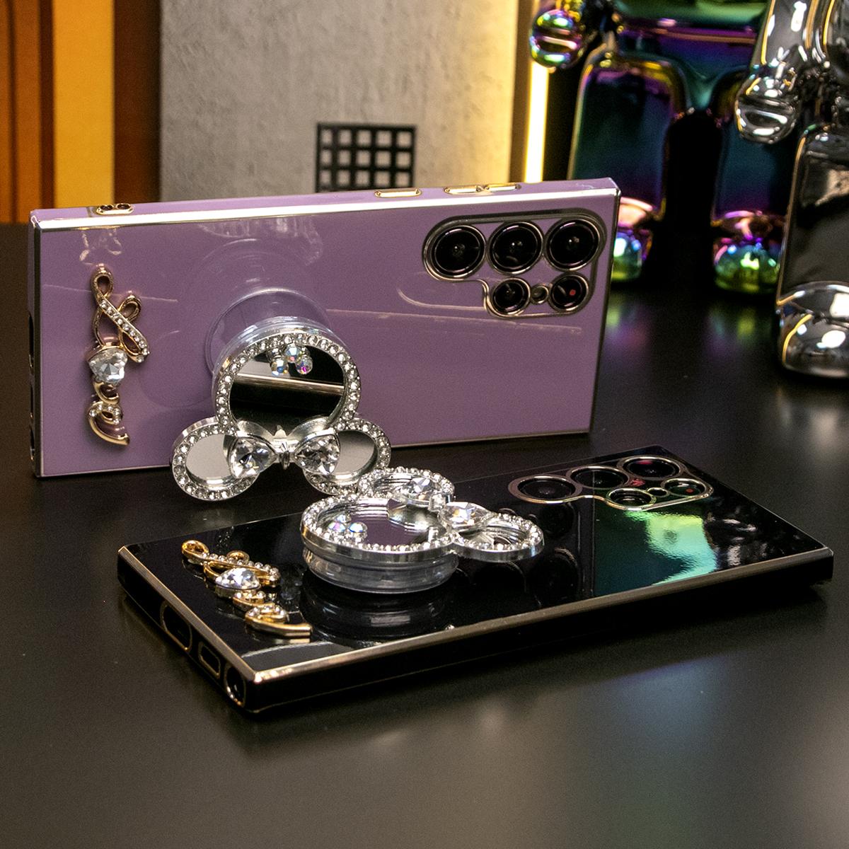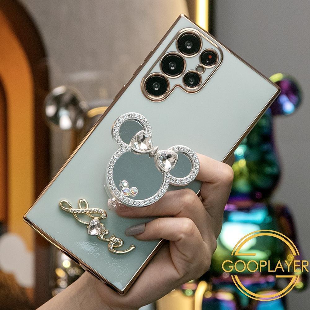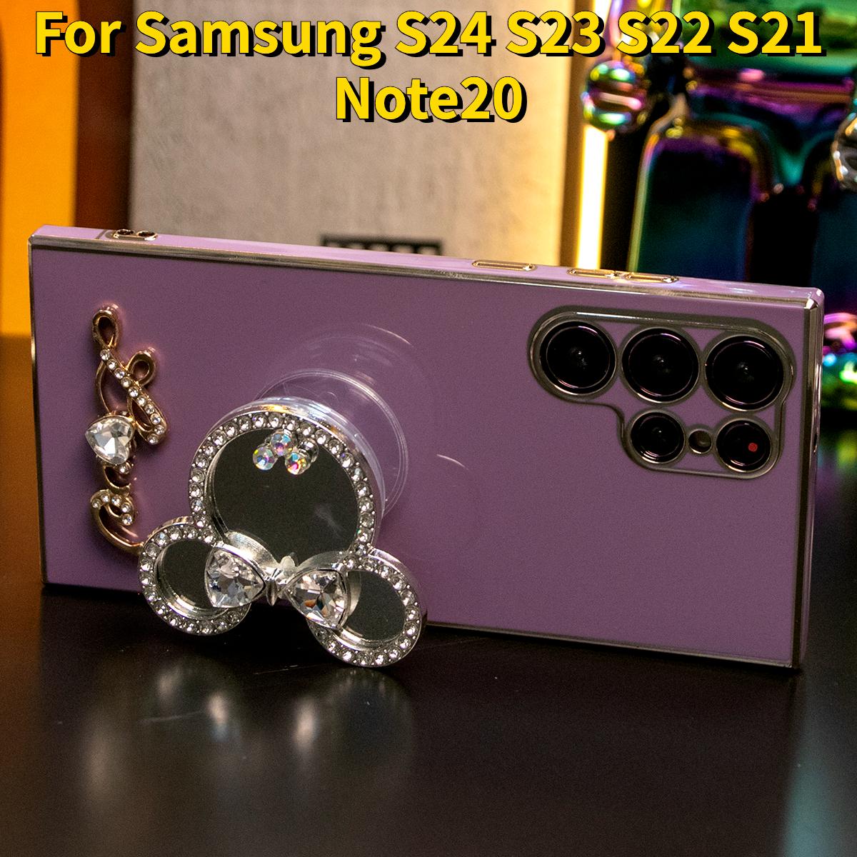Mouse Head Mirror Kickstand Plating Phone Case For Samsung S24 S23 S22 S21 FE Plus Ultra Note 20