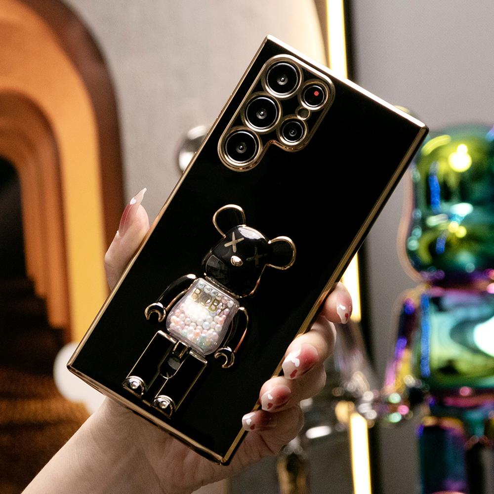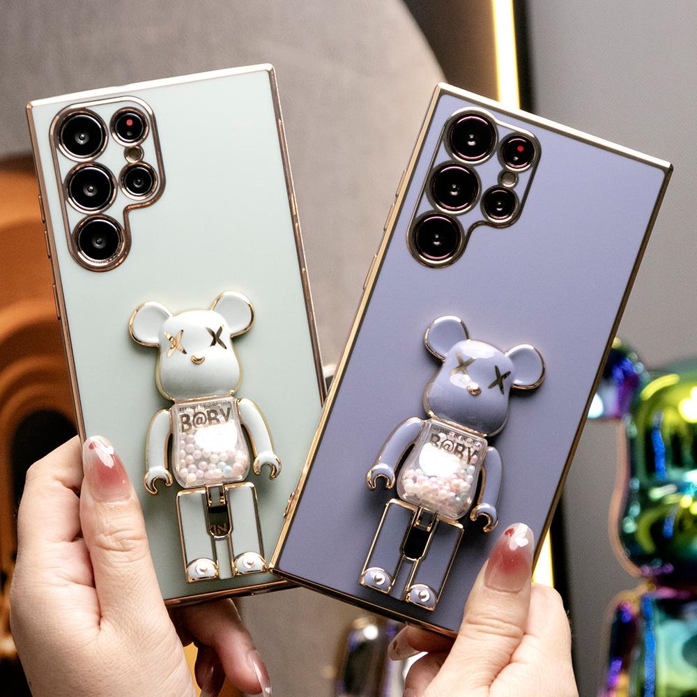 Plating Candy Bear Stand Phone Case for Samsung S25Ultra S25 S24FE S24 S23 S22 S21 FE Plus Ultra Note 20