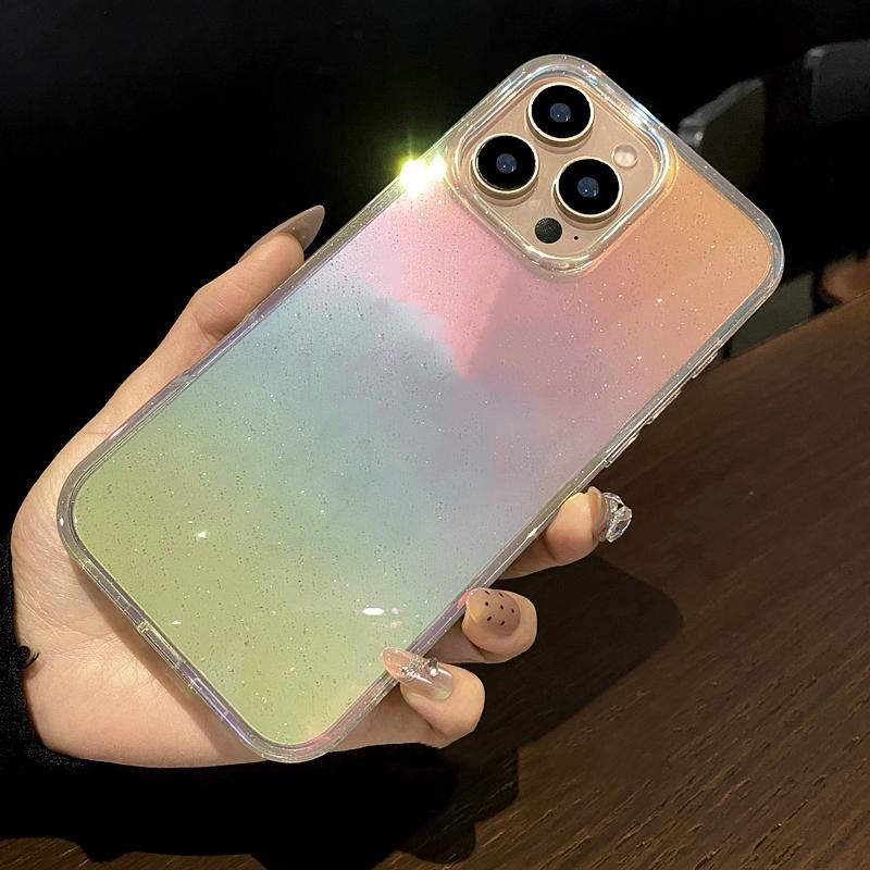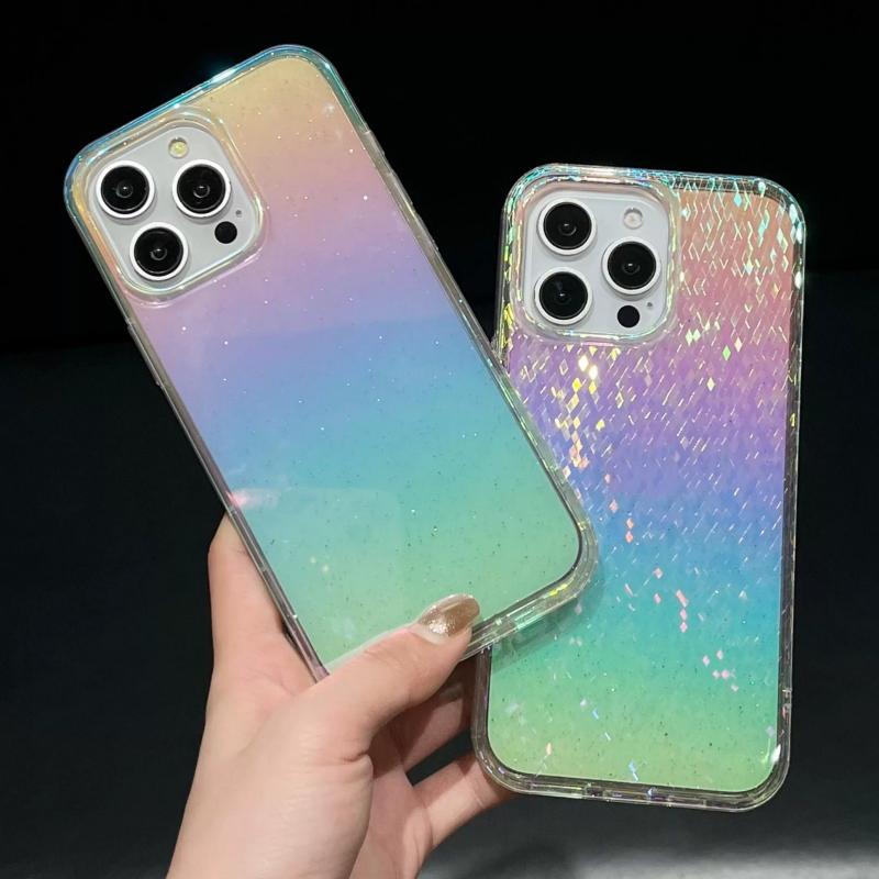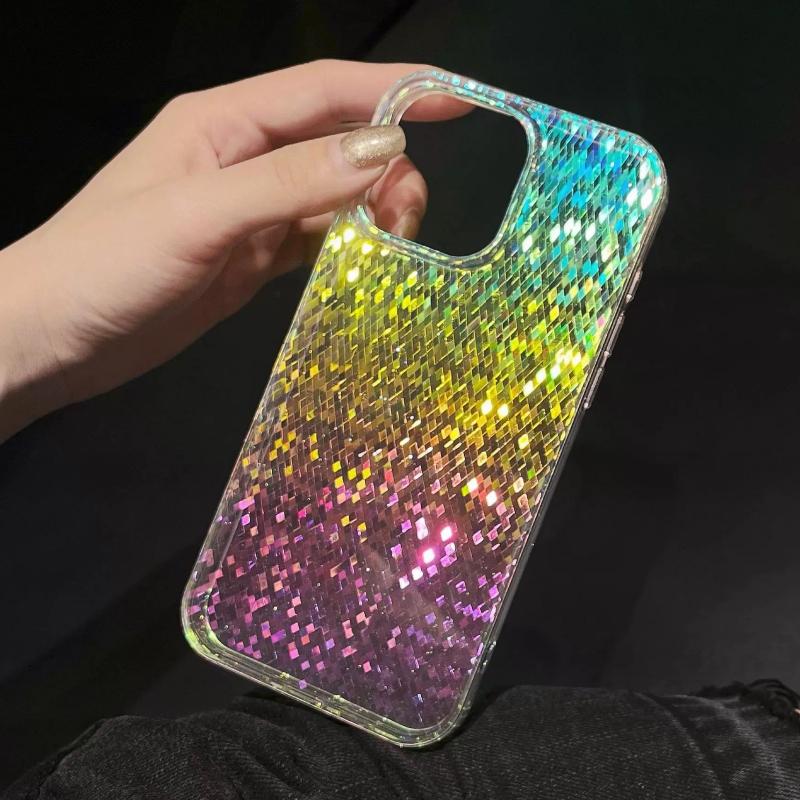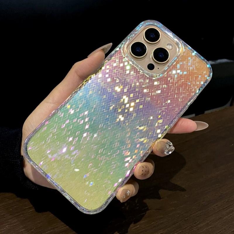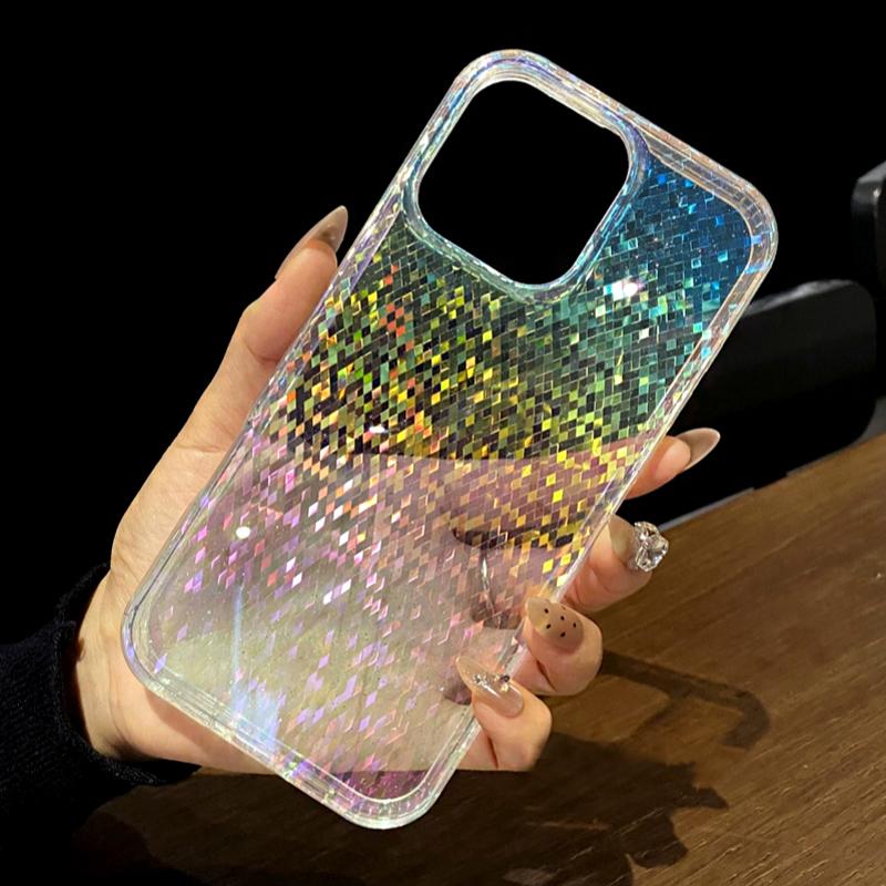 Stylish Glitter Laser Aurora Grid Pattern Phone Case For Samsung S25 S24 S23 S22 Ultra Plus FE Colorful Shining Clear Back Cover