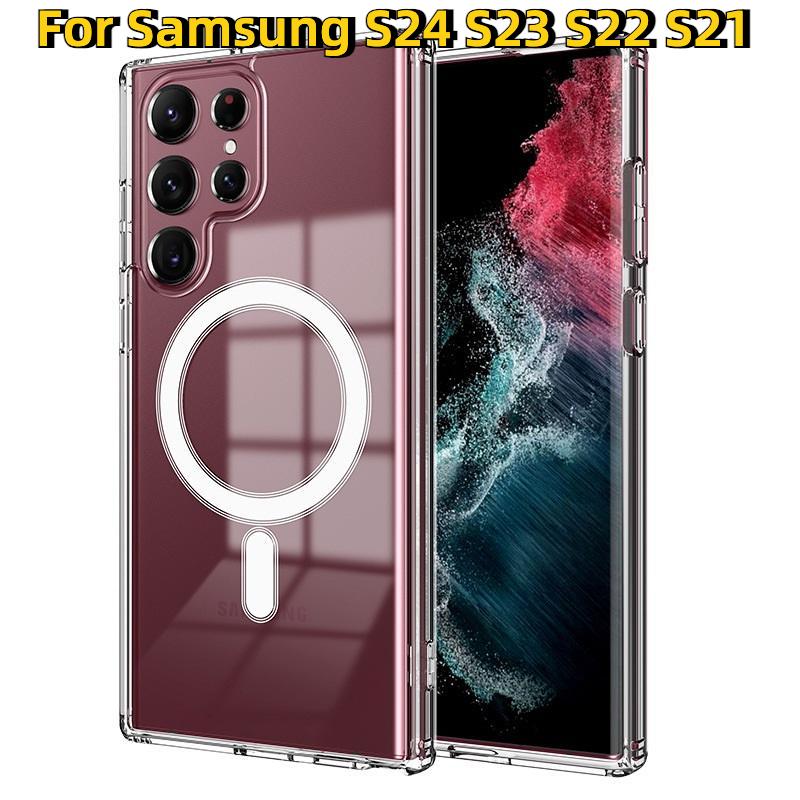 Transparent Magnetic Wireless Charging Phone Case for Samsung S24 S24FE S24Plus S24Ultra S23 S23FE S23Plus S23Ultra S22 S22Plus S22Ultra S21Ultra