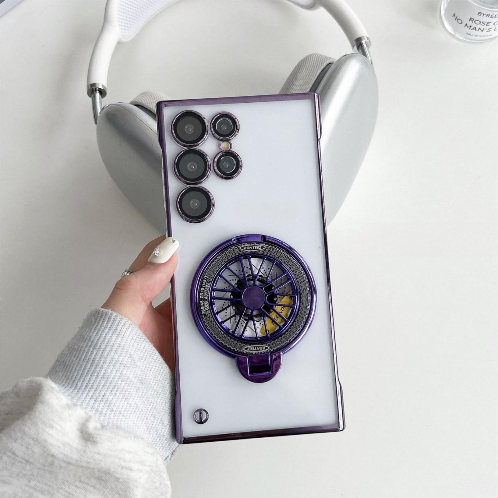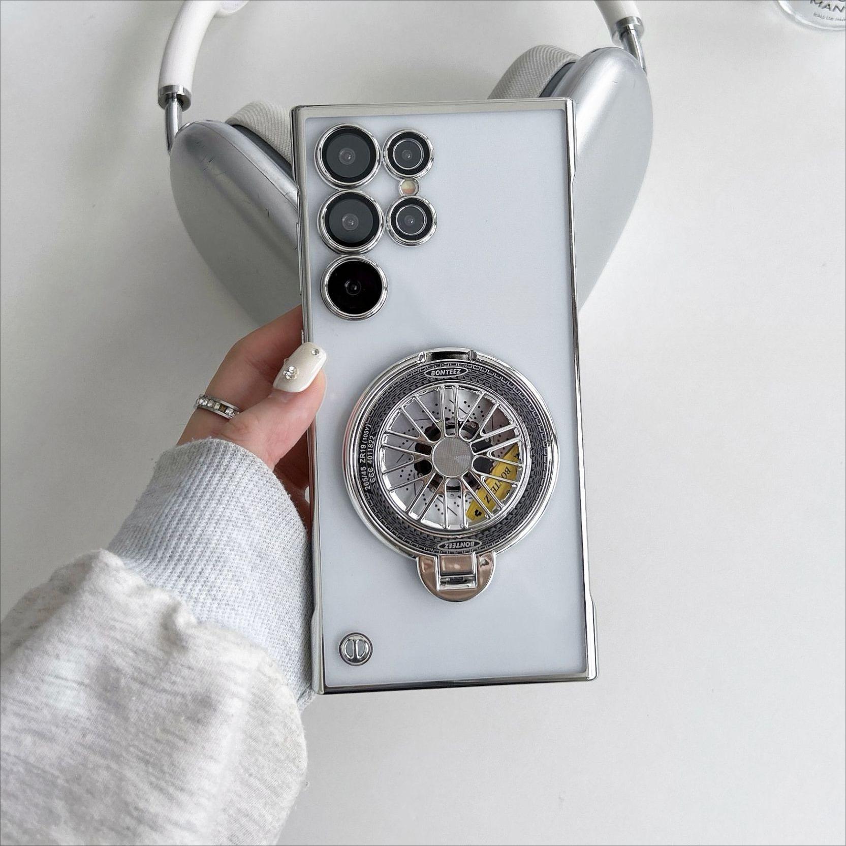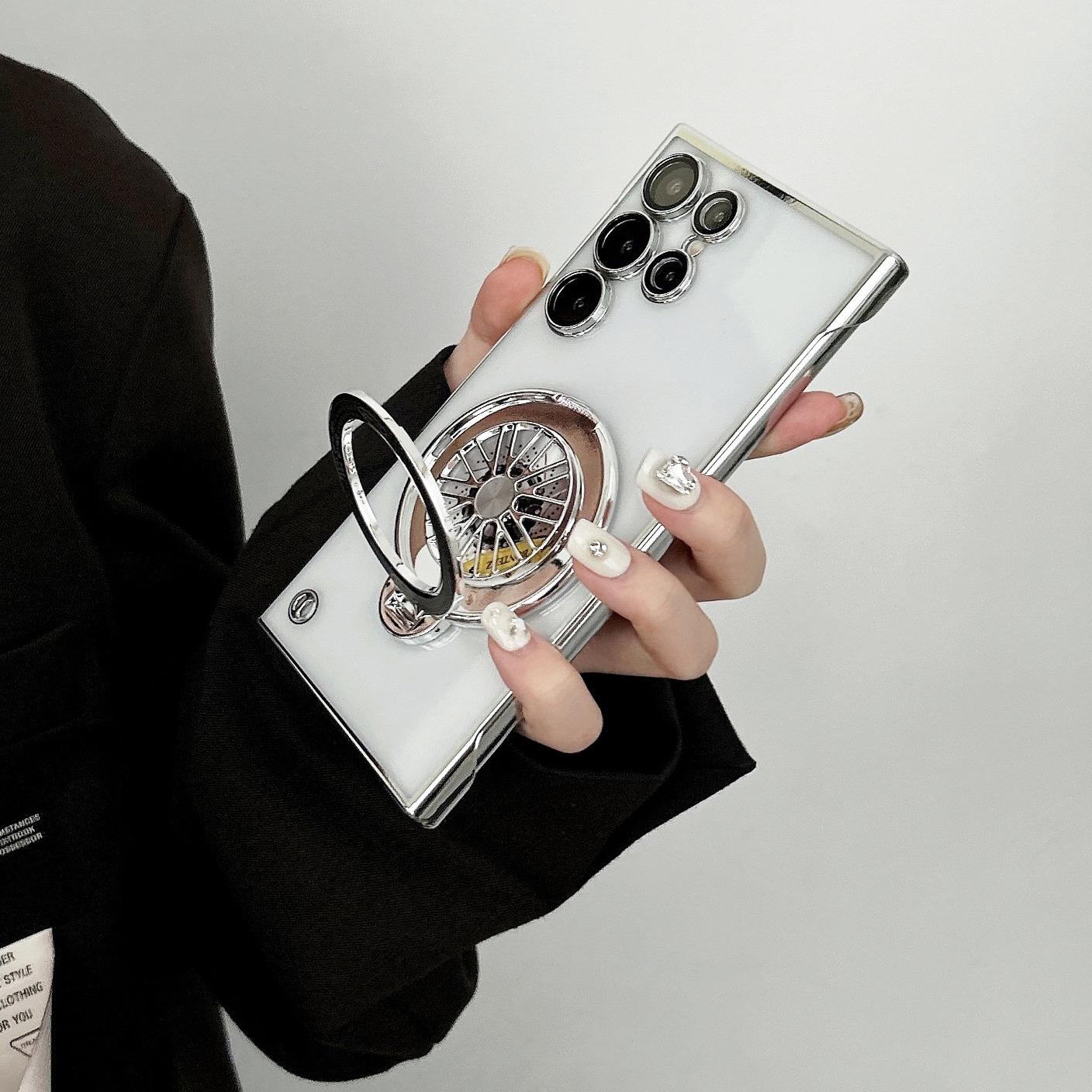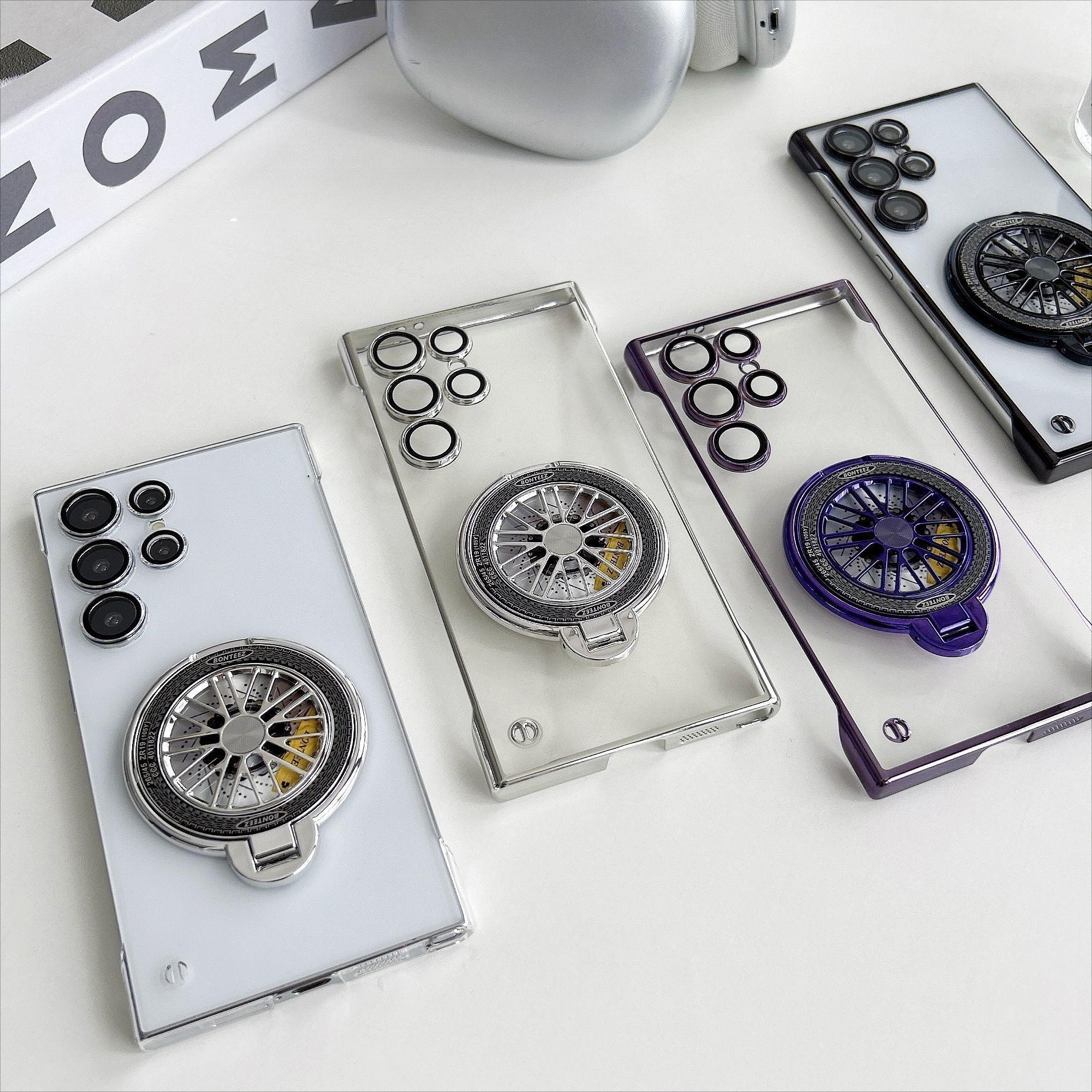 Ultra Slim Frameless Plating PC with Len Protector Phone Case with Metal Rotating Magnetic Kickstand For Samsung S25Ultra S24 S23 S22 Shockproof Support Wireless Charging Hard Full Cover