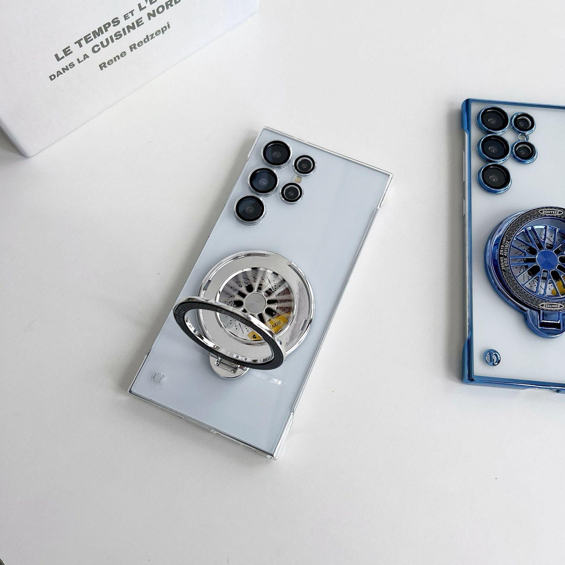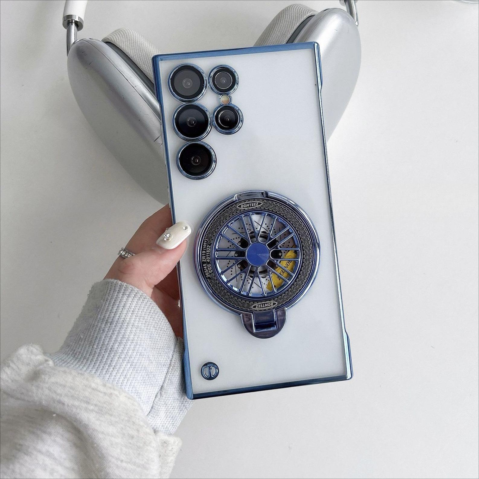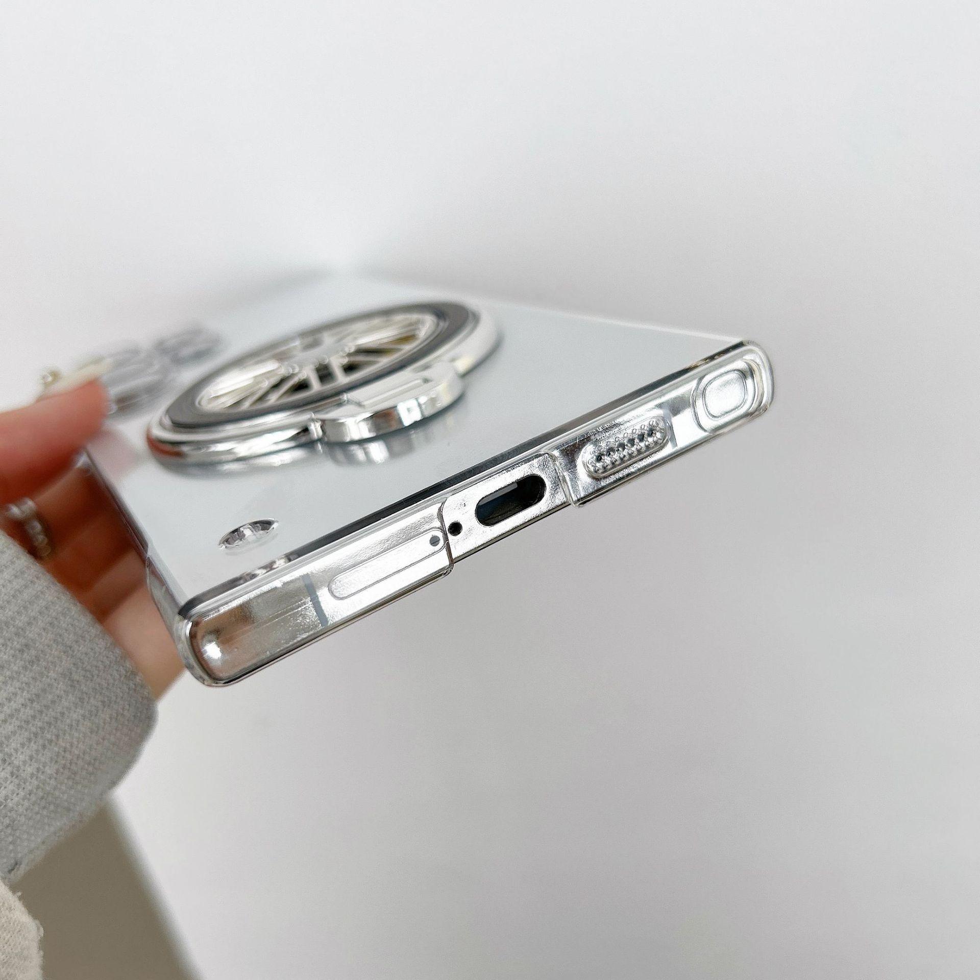Ultra Slim Frameless Plating PC with Len Protector Phone Case with Metal Rotating Magnetic Kickstand For Samsung S25Ultra S24 S23 S22 Shockproof Support Wireless Charging Hard Full Cover
