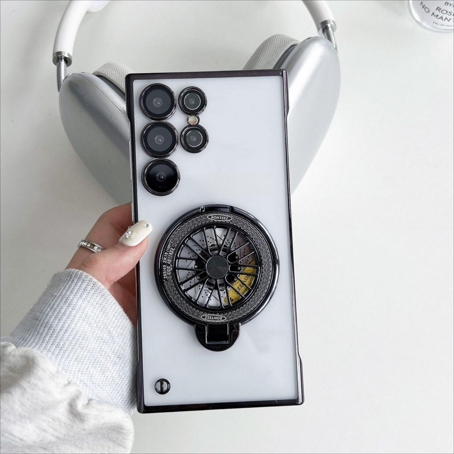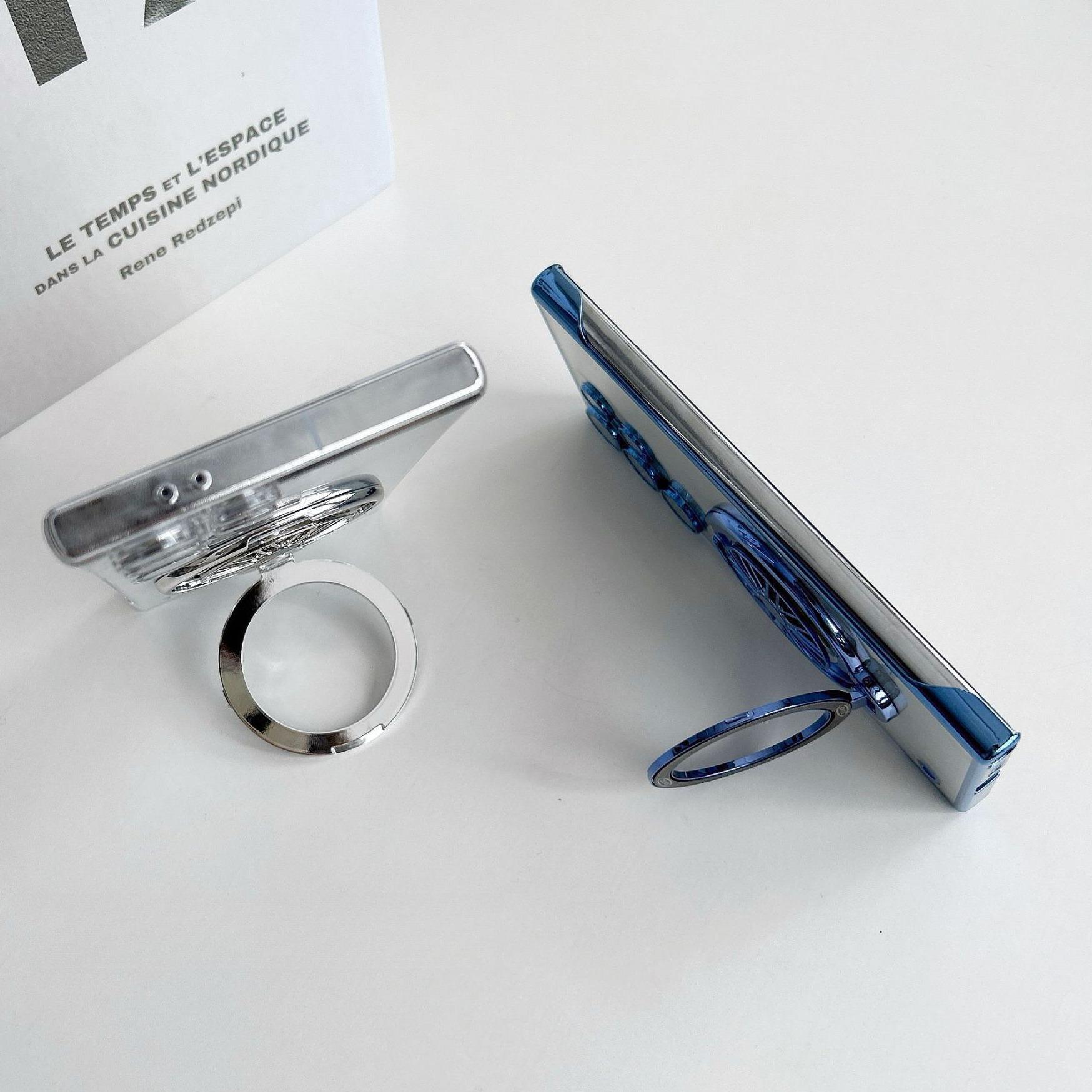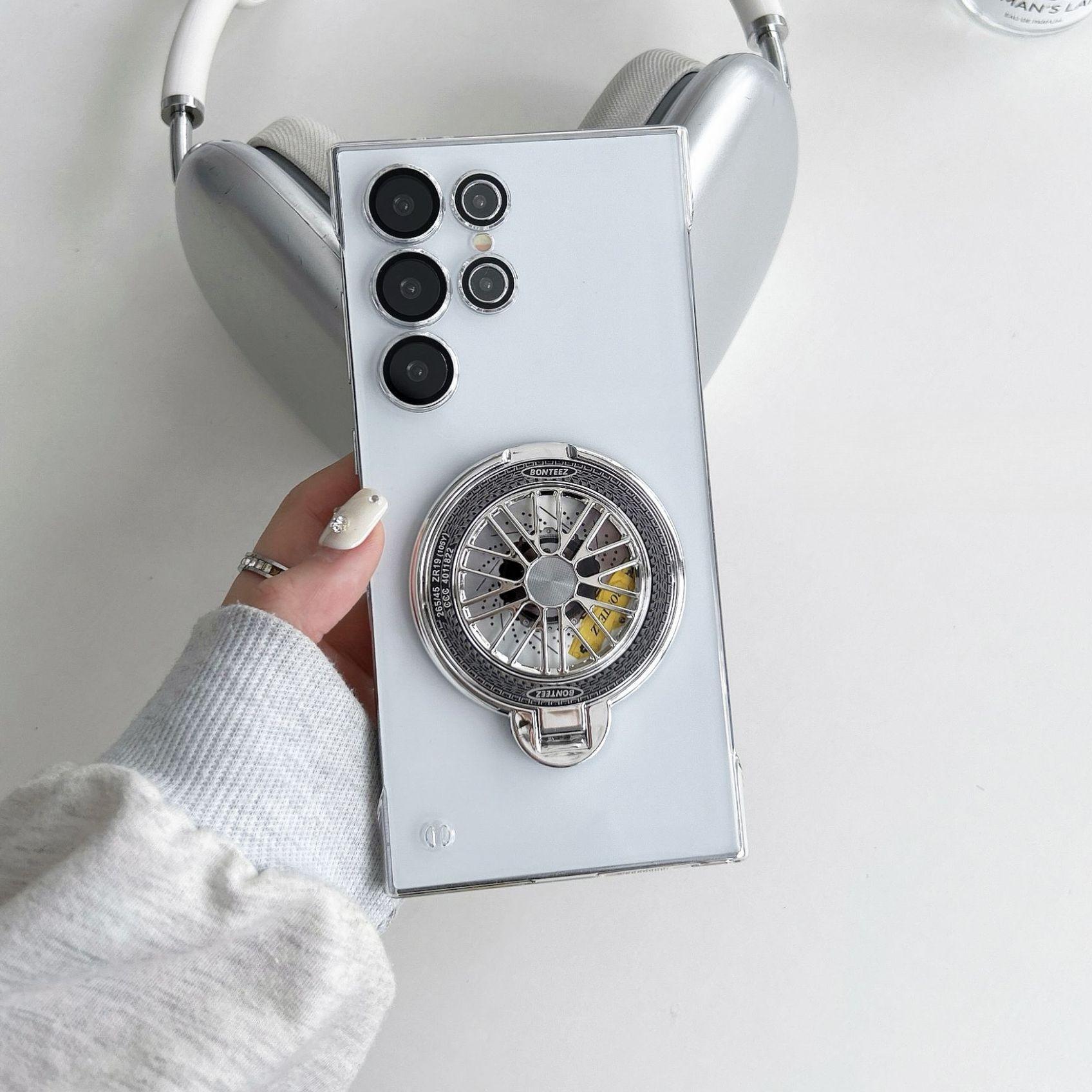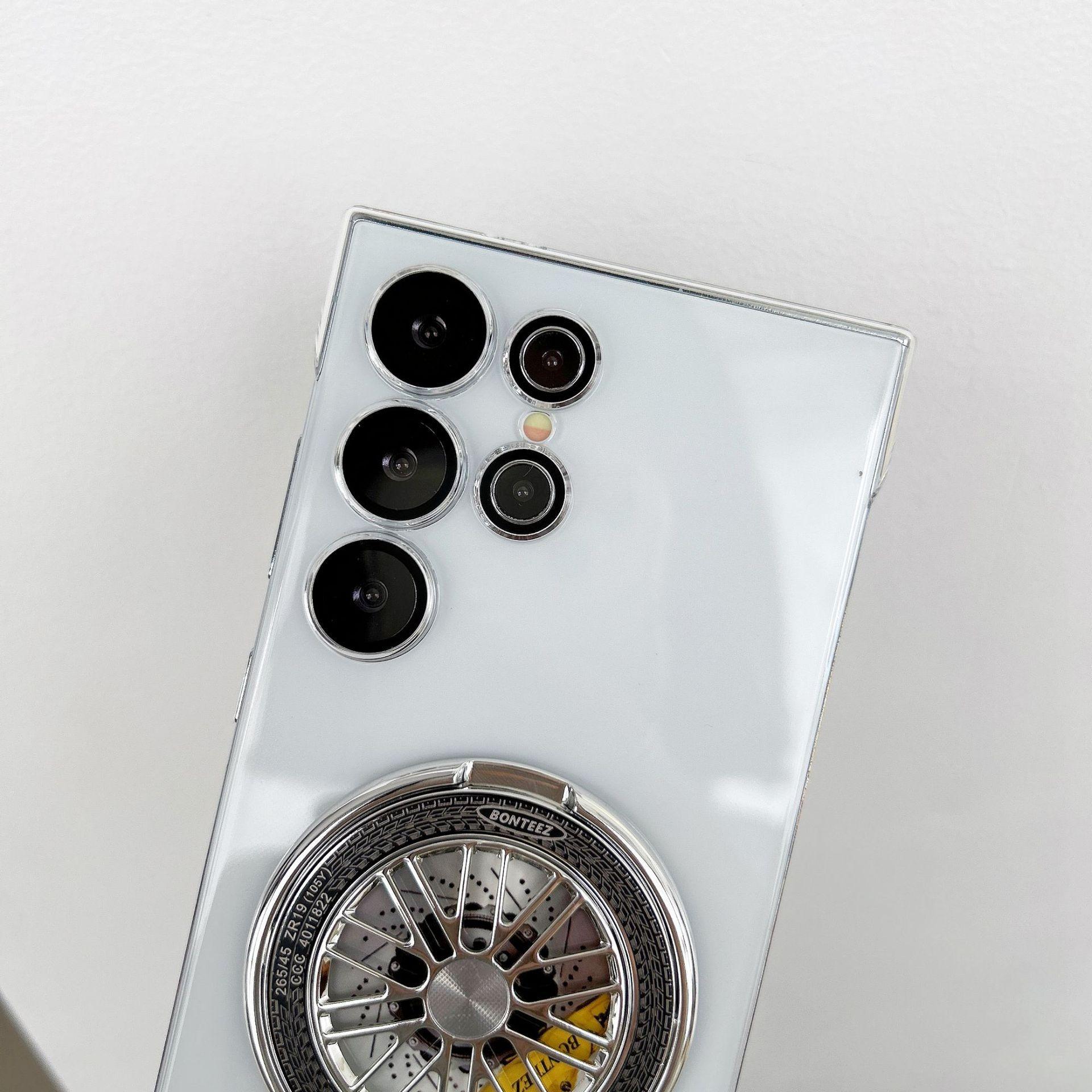 Ultra Slim Frameless Plating PC with Len Protector Phone Case with Metal Rotating Magnetic Kickstand For Samsung S25Ultra S24 S23 S22 Shockproof Support Wireless Charging Hard Full Cover