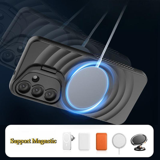 Matte Ripple Pattern Magnetic Phone Case with Camera Kickstand For iPhone 16ProMax 16 15 14 13 Skin Feel Shockproof Soft Full Cover