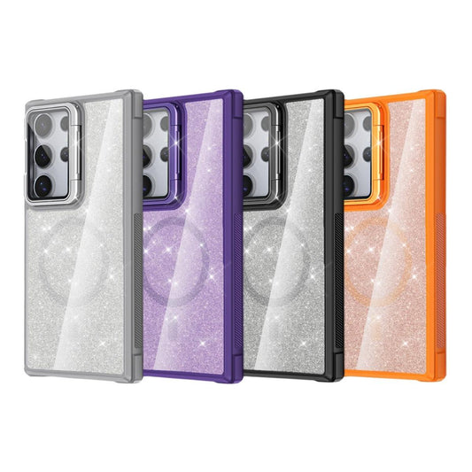 For Samsung S25Ultra S25 S24 S23 S21FE S20FE Strong Magnetic Phone Case, Glass Camera Kickstand Protection, Glitter Clear Acrylic Four Corner Shockproof Bumper Hand Feel Hard Full Cover