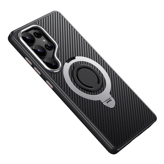 Carbon Fiber Pattern Slim PC Business Strong Magnetic Phone Case with Metal Kickstand For Samsung S25Ultra S25+ S25 S24 S23 Skin Feel Bumper Shockproof Hard Full Cover
