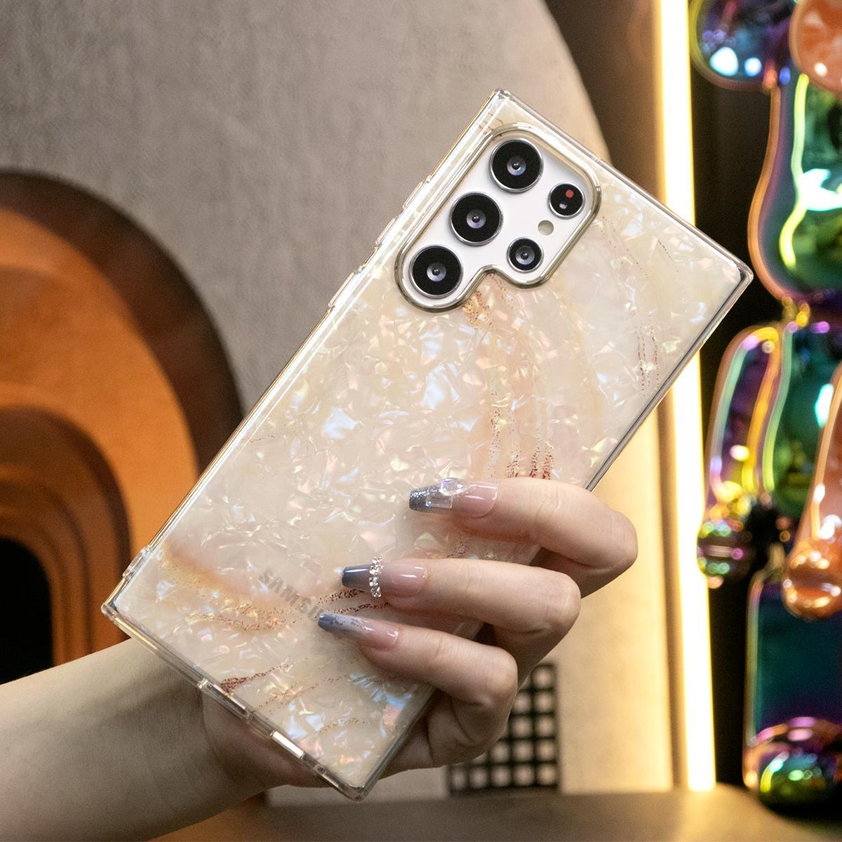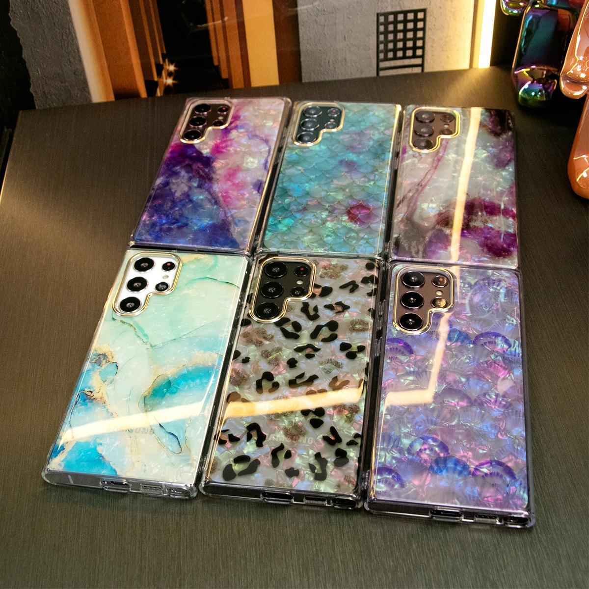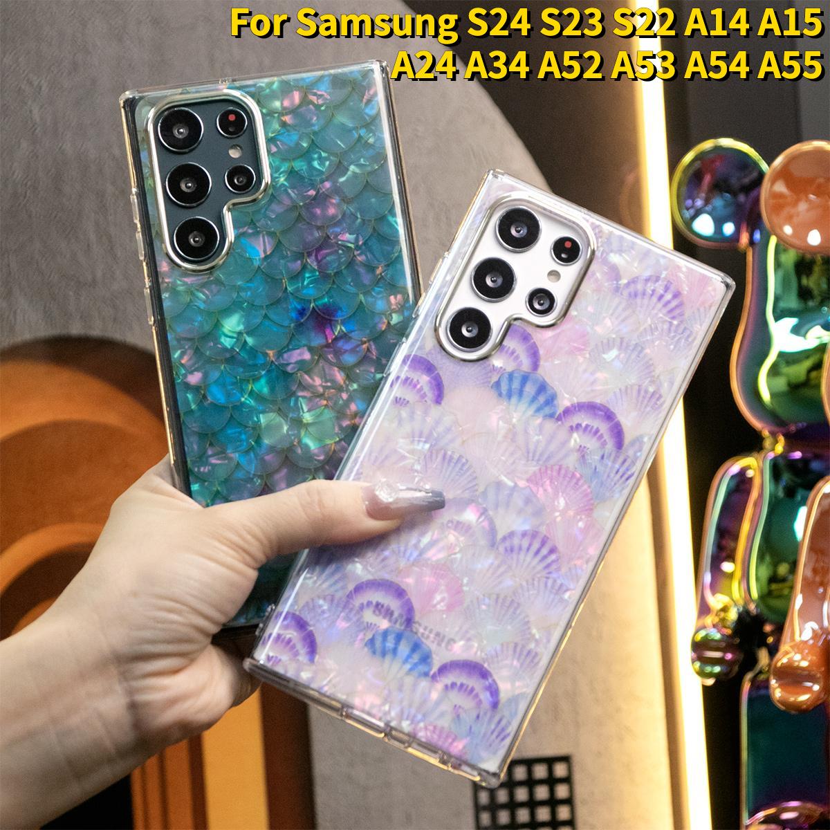 For Samsung S24Ultra S24FE S24 S23 S22 A55 A54 A35 A34 A25 A24 A15 A14 Case, Shell Marbling Pattern, Glitter Luxury Elegant Case Camera Protection Shockproof Hard Cover