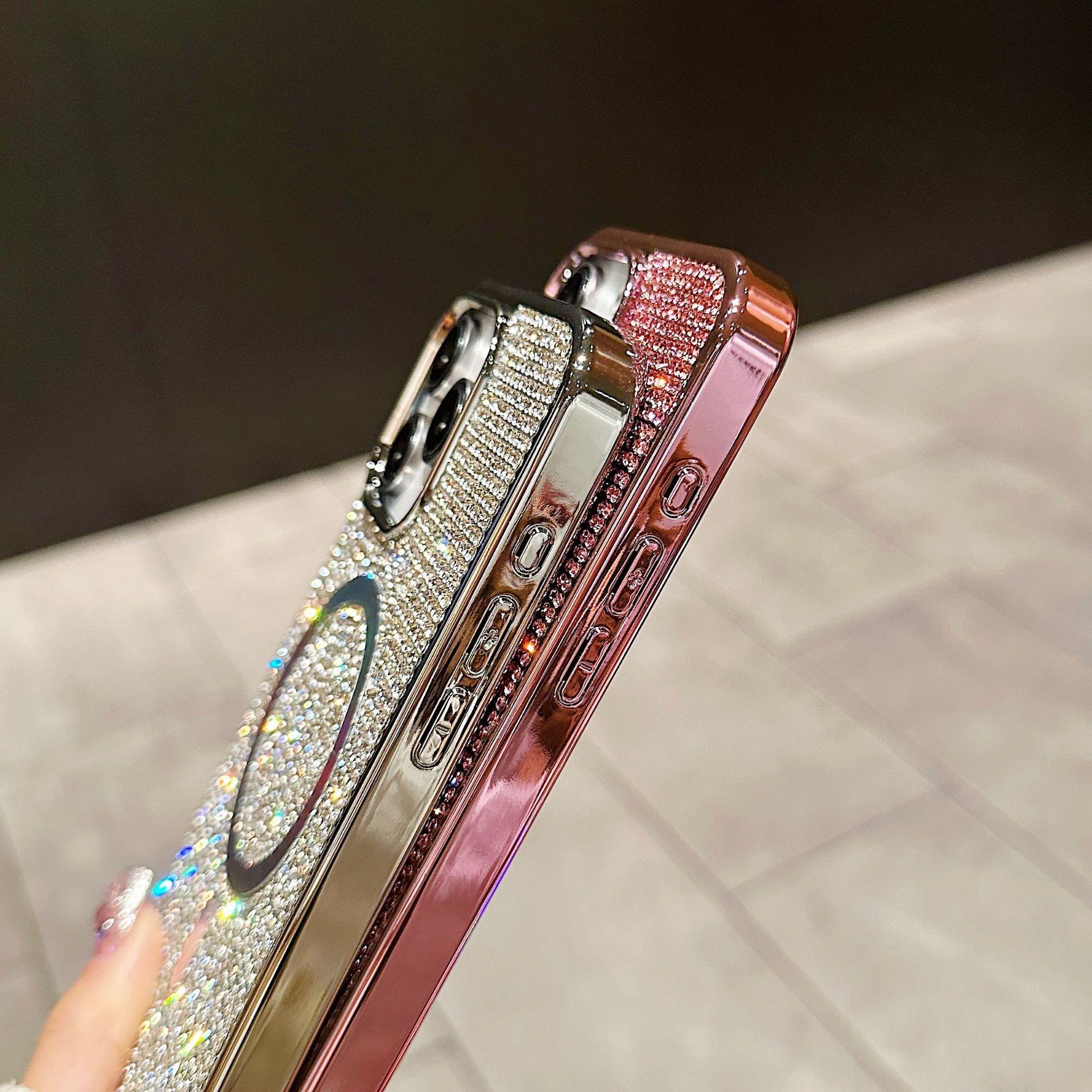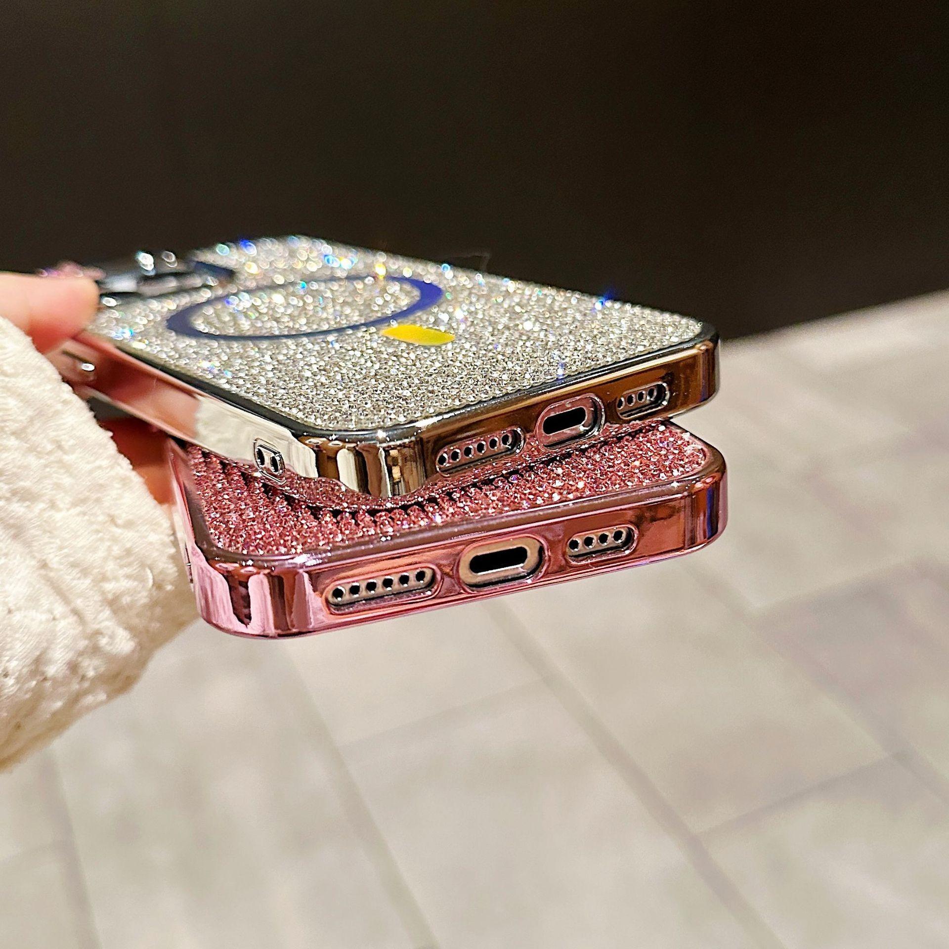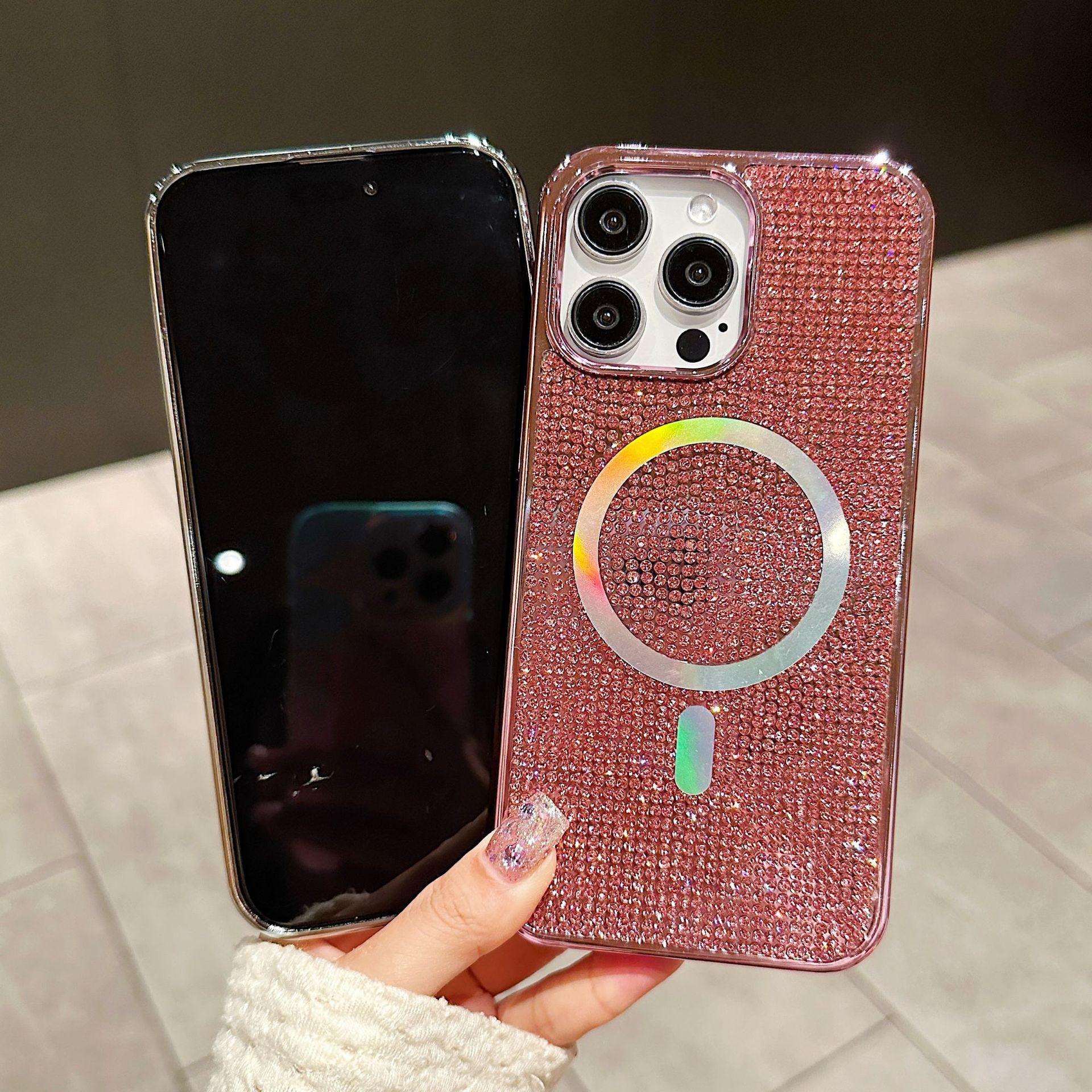 Luxury Rhinestone Glitter Plating Slim PC Strong Magnetic Phone Case For iPhone 16ProMax 15 14 13 Hard Support Wireless Charging Full Cover