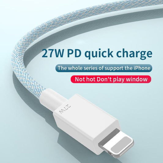 1m/2m Colorful 27W PD Quick Charge Cable Type - C iP to TPE + High-Density Braided Wire High Speed 480Mbps Fashionable Color Dazzle Colour Woven Data Cable