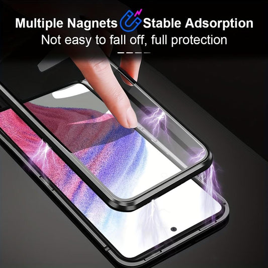 [Not Support Fingerprint] Magnetic Double Sided Glass Phone Case For Samsung A72 A73 A53 A54 A55 A32 A33 A34 A35 A24 A25 A14 A15, Magnetic Screen Protector Fully Screen Tempering HD Glass Protective Cover